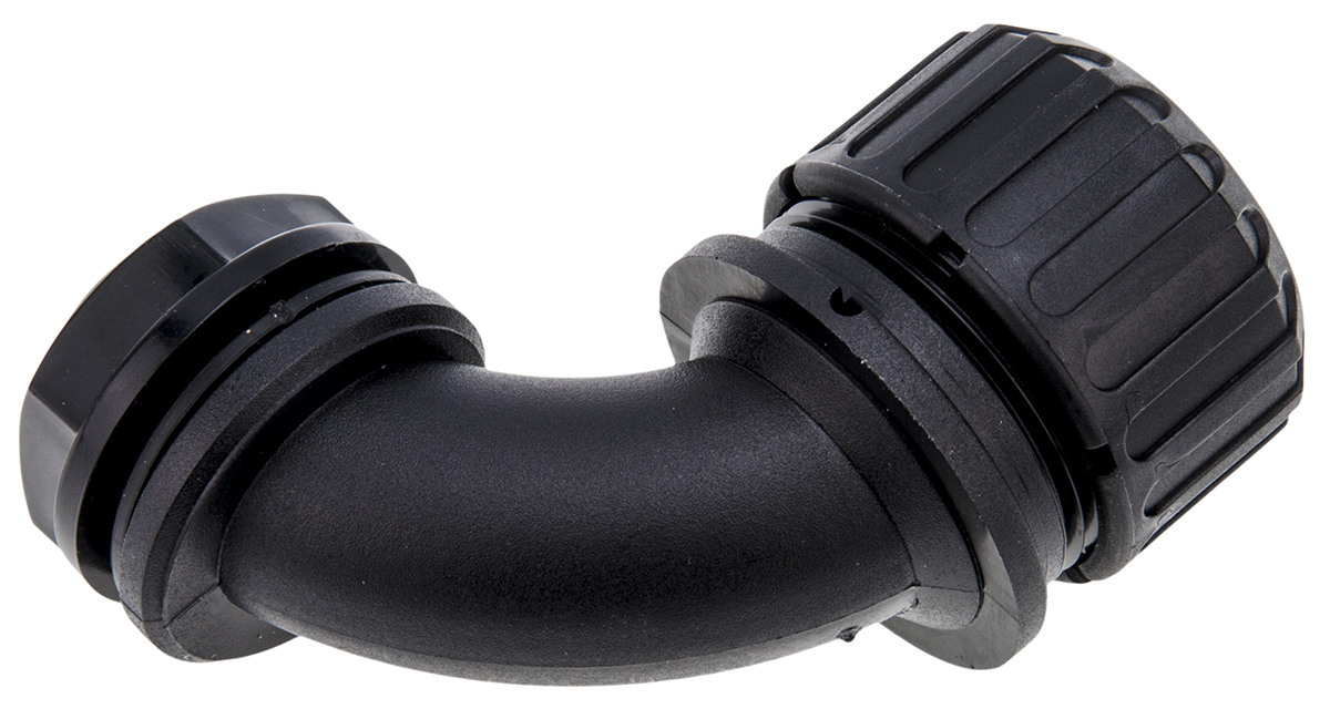 This is 90° Elbow Cable Conduit Fitting Nylon 66 Black Black 20mm nominal size IP65 M20 manufactured by Adaptaflex. The manufacturer part number is XF20/M20/C90. This 90° elbow tool is easy to use with versatile applications in various settings. A quality product with a nice black finish. The product complies with all safety standards, such as ce. It is IP rated with ip65. The product xf, is a highly preferred choice for users. It has a decent black colour. The product is made from highly stable and reliable nylon 66. It has a typical thread size of m20. It has about 20mm nominal size .