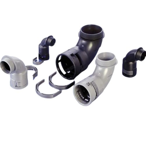 This is 90° Curved Elbow Cable Conduit Fitting PA 6 Black 36mm nominal size IP66 PG36 manufactured by PMA. The manufacturer part number is BVBD-P366GT. It has a typical thread size of m36. It has a decent black colour. The product is made from highly stable and reliable polyamide 6. It has about 36mm nominal size .