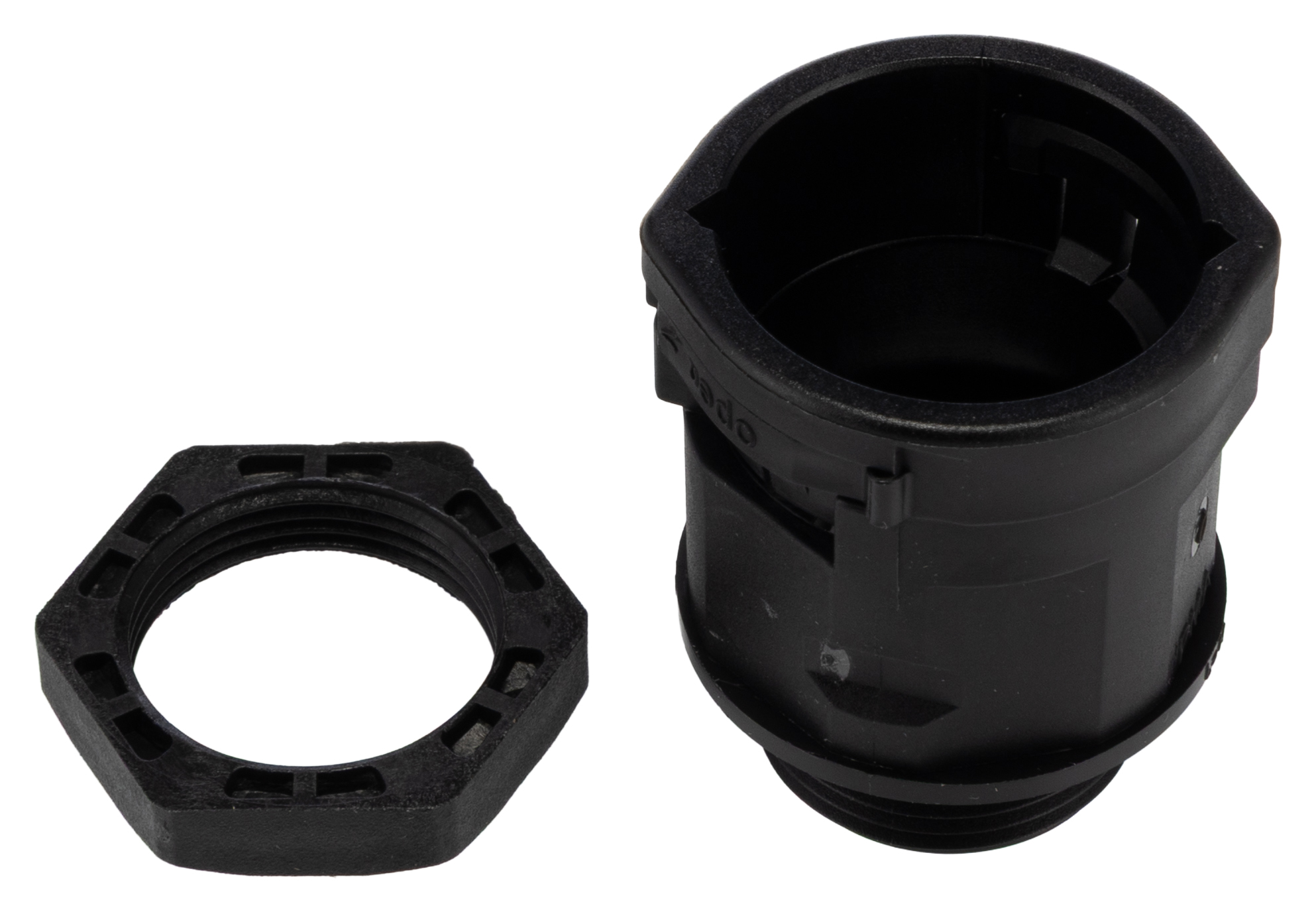 This is Straight Cable Conduit Fitting PA 6 Black Black 25mm nominal size IP66 M25 manufactured by PMA. The manufacturer part number is ALND-M253. This straight tool is easy to use with versatile applications in various settings. A quality product with a nice black finish. It is IP rated with ip66. It has a decent black colour. The product is made from highly stable and reliable pa 6. It has a typical thread size of m25. It has about 25mm nominal size .