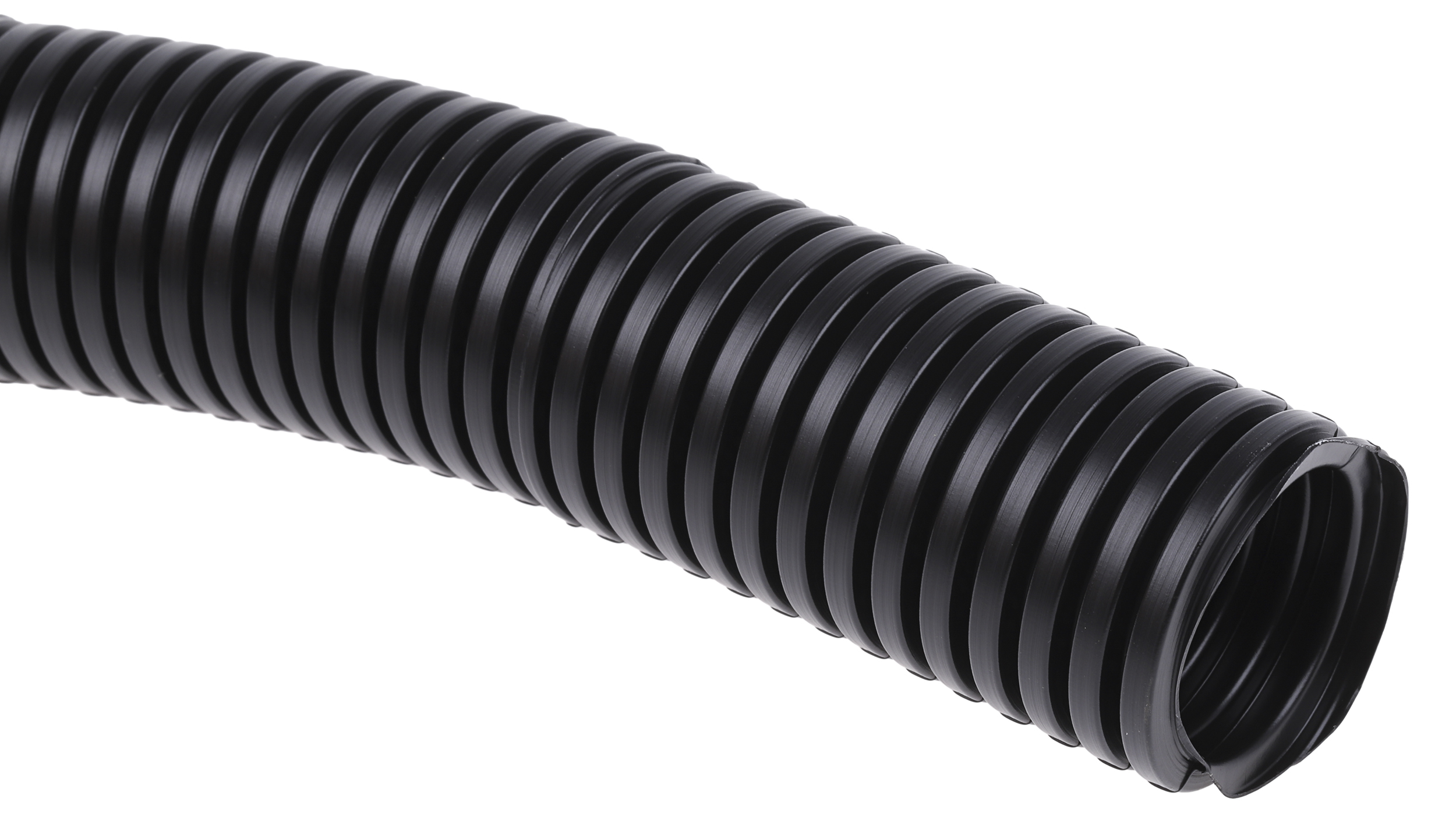This is Plastic Flexible Conduit Black 32mm 10m manufactured by RS Pro. The manufacturer part number is 755-9039. Its overall interior diameter is about 24.3mm . It has a decent black colour. The product is made from highly stable and reliable plastic. It has about 32mm nominal diameter . It has a/an flexible type conduit . Its accurate length is 10m. Its outer diameter is 32mm. The coating material is uncoated .