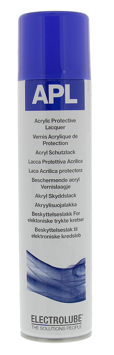 This is transparent 400 ml Aerosol Conformal Coating for PCBs -55 → +125 °C manufactured by Electrolube. The manufacturer part number is APL400H. It is assigned with a trade name of apl. It has a decent transparent colour. The product is made from highly stable and reliable acrylic resin. Applications Information involves pcbs. The package is a sort of aerosol. Whereas, the minimum operating temperature of the product is -55°c. Its package size is approximately 400 ml . It has a maximum operating temperature of +125°c.