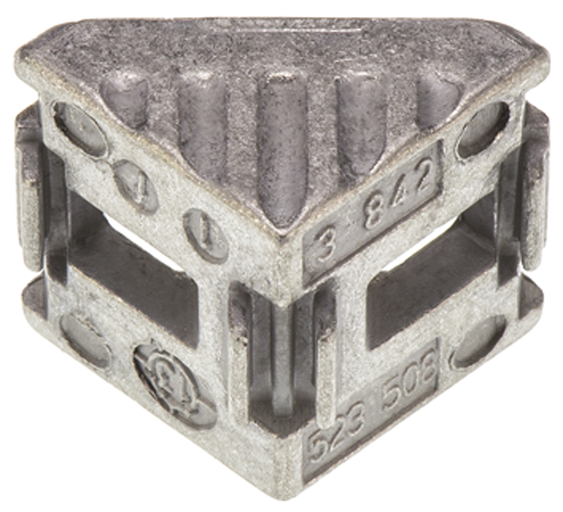 Angle Brackets Bosch Rexroth angle brackets can be used to make a strong connection between 20 x 20, 30 x 30, 40 x 40, 45 x 45 or 50 x 50 profiles at an angle of 90° . Features & Benefits Brackets are unpainted Includes non-turning centring lugs for rapid and precise alignment Product Application Information Used for shelf supports, structure reinforcement, securing systems to the floor and so on.