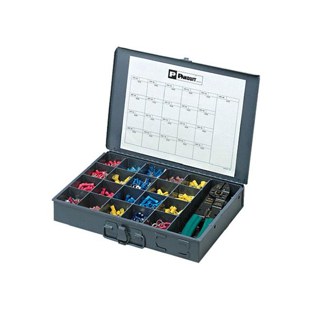 This is manufactured by Panduit Corp. The manufacturer part number is K-1104. The termination is designed to provide robust applications in a variety of specific settings. It is assigned with possible HTSUS value of 8536.90.4000. It is shipped in case package . The product pan-term®, is a highly preferred choice for users. The product is not applicable. In addition, it is reach unaffected. Its typical moisture sensitivity level is not applicable. Values include - 451 pcs - assorted insulated rings, forks, splices, wire joints . It has a long 15 weeks standard lead time. The product is designated with the ear99 code number.