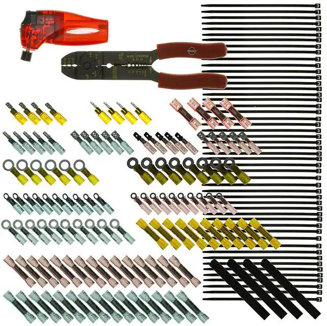 This is manufactured by Molex. The manufacturer part number is 76650-0026. It features connector kit wire splice, quick disconnect, ring tongue. The wire splice, quick disconnect, ring tongue is designed to provide robust applications in a variety of specific settings. The product perma-seal, is a highly preferred choice for users. In addition, plastic box with bin guide is the available packaging type of the product. Values include - 174 pcs - assorted 22 ~ 10 awg terminals, butane torch, cable ties, crimp tool, shrink tubing . The molex's product offers user-desired applications.