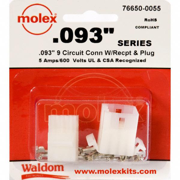 This is manufactured by Molex. The manufacturer part number is 0766500055. The circuit plug, receptacle is designed to provide robust applications in a variety of specific settings. It is assigned with possible HTSUS value of 8536.69.8000. It is shipped in retail package package . The product standard .093, is a highly preferred choice for users. The product is not applicable. Its typical moisture sensitivity level is 1 (unlimited). Values include - 24 pcs - 9 position circuit plug, receptacle, 22 ~ 18 awg crimp terminals . Moreover, it corresponds to 76650, a base product number of the product. It has a long 14 weeks standard lead time. The product is designated with the ear99 code number.