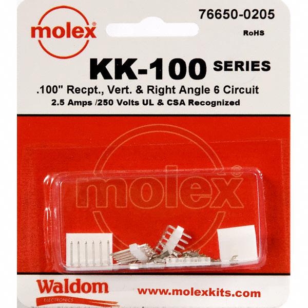 This is manufactured by Molex. The manufacturer part number is 0766500205. The rectangular - contact, header, housing is designed to provide robust applications in a variety of specific settings. It is assigned with possible HTSUS value of 8536.69.8000. The product kk, is a highly preferred choice for users. In addition, it is vendor undefined. Its typical moisture sensitivity level is 1 (unlimited). In addition, retail package is the available packaging type of the product. Values include - 19 pcs - assorted 6 circuit header, housing, 30 ~ 22 awg crimp terminals . It has a long 14 weeks standard lead time. The molex's product offers user-desired applications. Moreover, it corresponds to 76650, a base product number of the product. The product is designated with the ear99 code number.