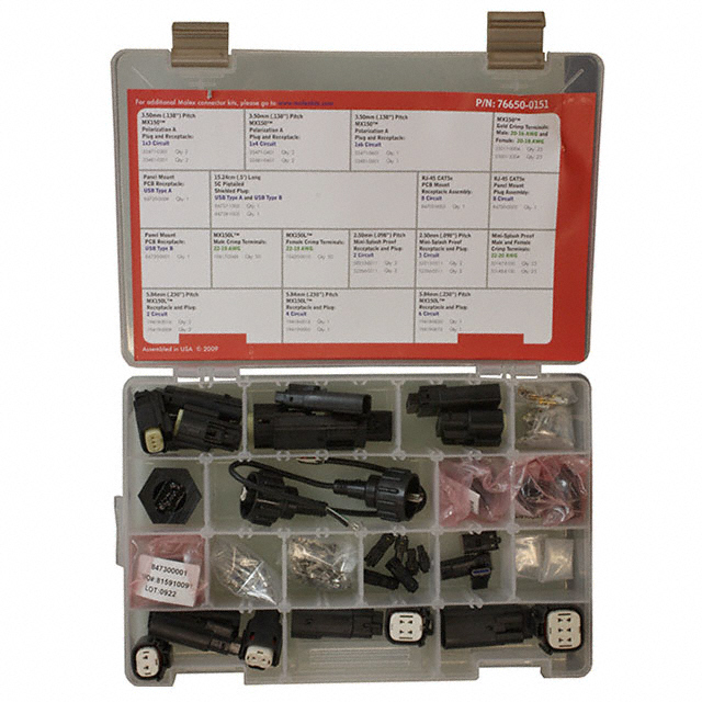 This is manufactured by Molex. The manufacturer part number is 0766500151. The contact, plug, receptacle, usb is designed to provide robust applications in a variety of specific settings. It is assigned with possible HTSUS value of 8536.69.8000. The product is rohs3 compliant. Its typical moisture sensitivity level is 1 (unlimited). In addition, case is the available packaging type of the product. Values include - 234 pcs - assorted 2 ~ 4, 6 plug, receptacle, usb assembly, 22 ~ 18 awg crimp terminals . The molex's product offers user-desired applications. Moreover, it corresponds to 76650, a base product number of the product. The product is designated with the ear99 code number.