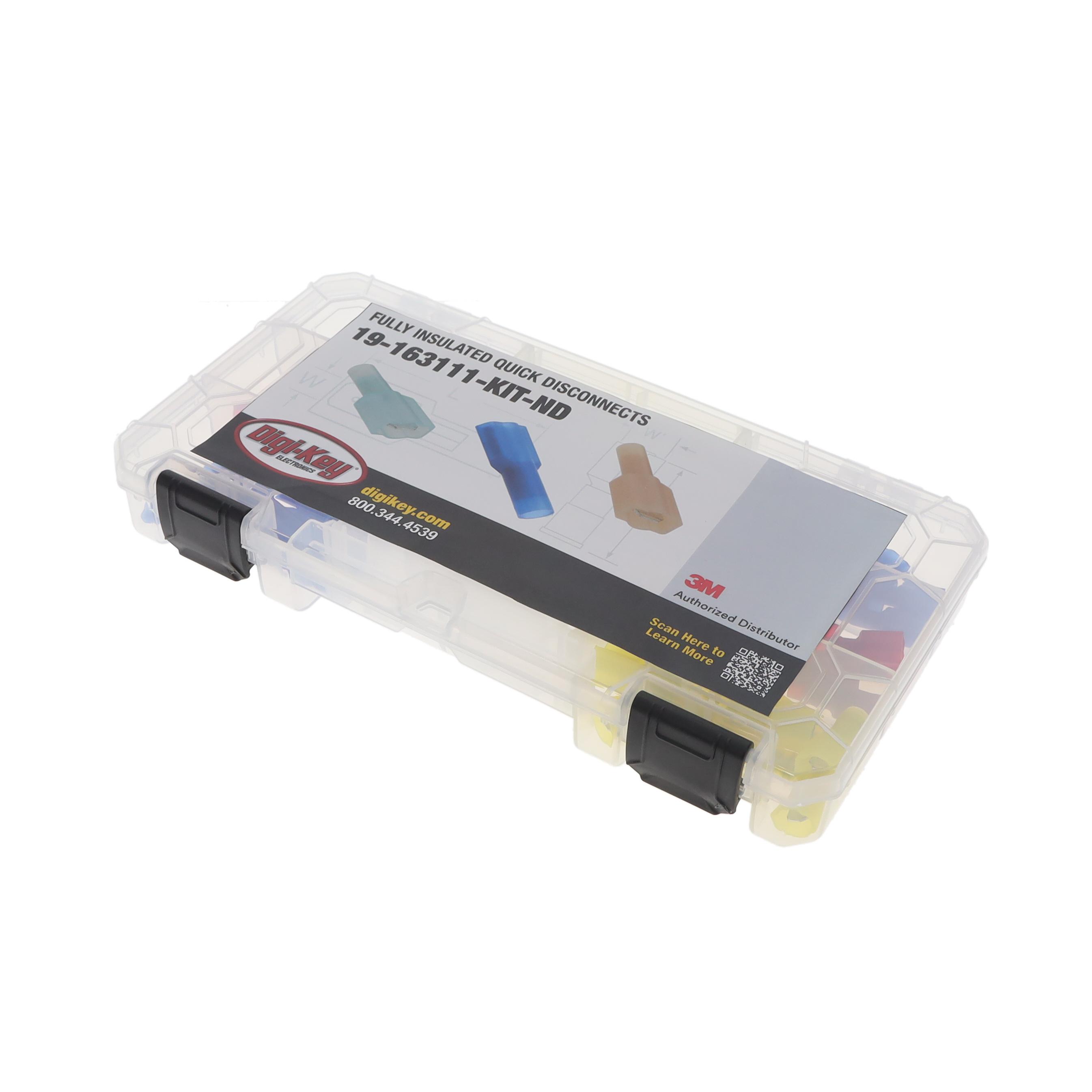 This is manufactured by 3M. The manufacturer part number is 19-163111-KIT. The quick disconnect is designed to provide robust applications in a variety of specific settings. It is assigned with possible HTSUS value of 8536.90.4000. Its typical moisture sensitivity level is not applicable. In addition, case is the available packaging type of the product. Values include - 80 pcs - assorted 24 ~ 10 awg crimp terminals . The 3m's product offers user-desired applications. Moreover, it corresponds to 19-16311, a base product number of the product. The product is designated with the ear99 code number.
