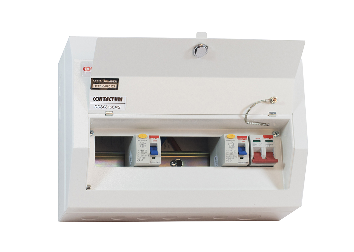 This is 8 Way Flex H/In SL 100A Sw+2x80A RCD CU manufactured by Contactum. The manufacturer part number is DDS08188MS. The product has a current rating of 100a. The given dimensions of the product include 330 x 260 x 130mm. It has 8 total ways . The product defender, is a highly preferred choice for users. Its accurate length is 330mm. The product also features robust steel housing material. Furthermore, the product is 130mm wide. The product comes in 260mm depth.
