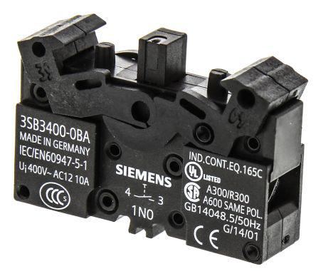 This is 3SB3 Contact Block 1NO Screw terminal manufactured by Siemens. The manufacturer part number is 3SB3400-0BA. The product has a current rating of 10 a. The product siemens 3sb3, is a highly preferred choice for users. It includes a body/fixing collar no . The contact is equipped with 1no configuration. Its block type is contact block . The terminal is a screw type.