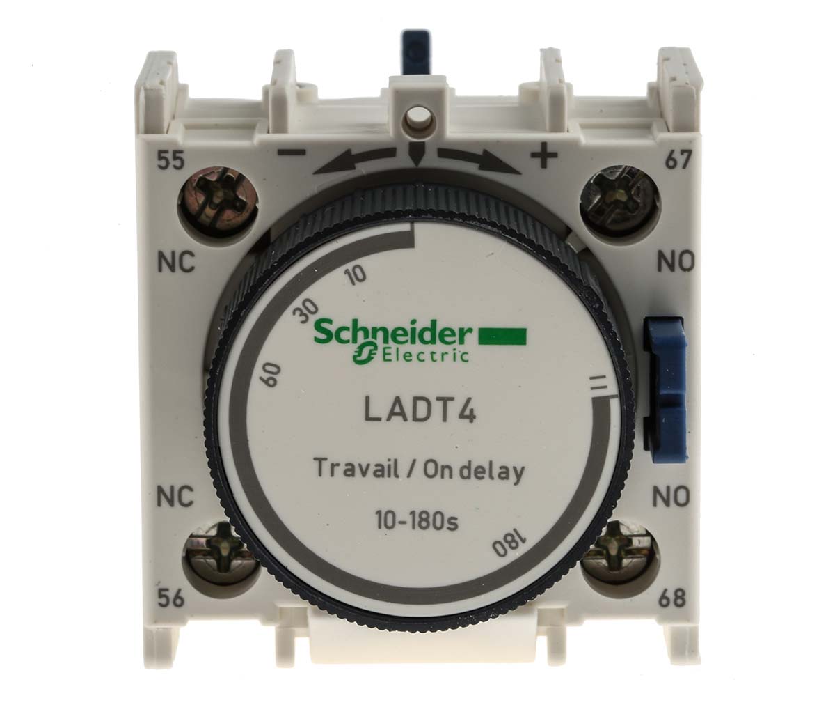 The LADT4 pneumatic timer enhances operational precision by offering a wide, easily adjustable time delay range. Its front-mount design ensures quick, hassle-free addition or replacement of TeSys D contactors, minimising downtime. The dual NO/NC contacts offer superior control flexibility, making it highly adaptable for various machine sequencing and control circuit applications in industrial settings.