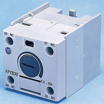 This is Bulletin 100-C Series Analogue (OFF Delay) Contactor Timer Range 1.8 → 180s NO/NC Contacts manufactured by Allen Bradley. The manufacturer part number is 100-FPTB180. Its timer range is 1.8 → 180s . The product 100-c, is a highly preferred choice for users. It is a type of contactor timer accessory. The contact is equipped with dpst configuration. It features bulletin range. Moreover, it has a/an analogue (off delay) timer function .