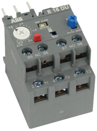 This is Overload Relay 6.3 A 1.9 → 6.3 A manufactured by ABB. The manufacturer part number is E16DU6.3. Moreover, it has a/an manual and automatic reset method . The given dimensions of the product include 44.4 x 74.6 x 57 mm. It is created with 3p pole configuration . The product has -25 → +70 °c of operating temperature range. The rated contact current is 1.9 → 6.3 a. The product e16du, is a highly preferred choice for users. Its accurate length is 44.4mm. The product is available in din rail mount style. Furthermore, the product is 74.6mm wide. The product comes in 57mm depth. Features 600 (ul/csa) v ac, 690 (iec) v ac supply voltage. Whereas, the minimum operating temperature of the product is -25°c. It has about 6.3 a FLC motor rating . The integrated contact has 600 v ac/dc of voltage rating. It has a maximum operating temperature of +70°c. The terminal is a screw type. It is composed of [Number of Auxiliary Contacts] auxiliary contacts.