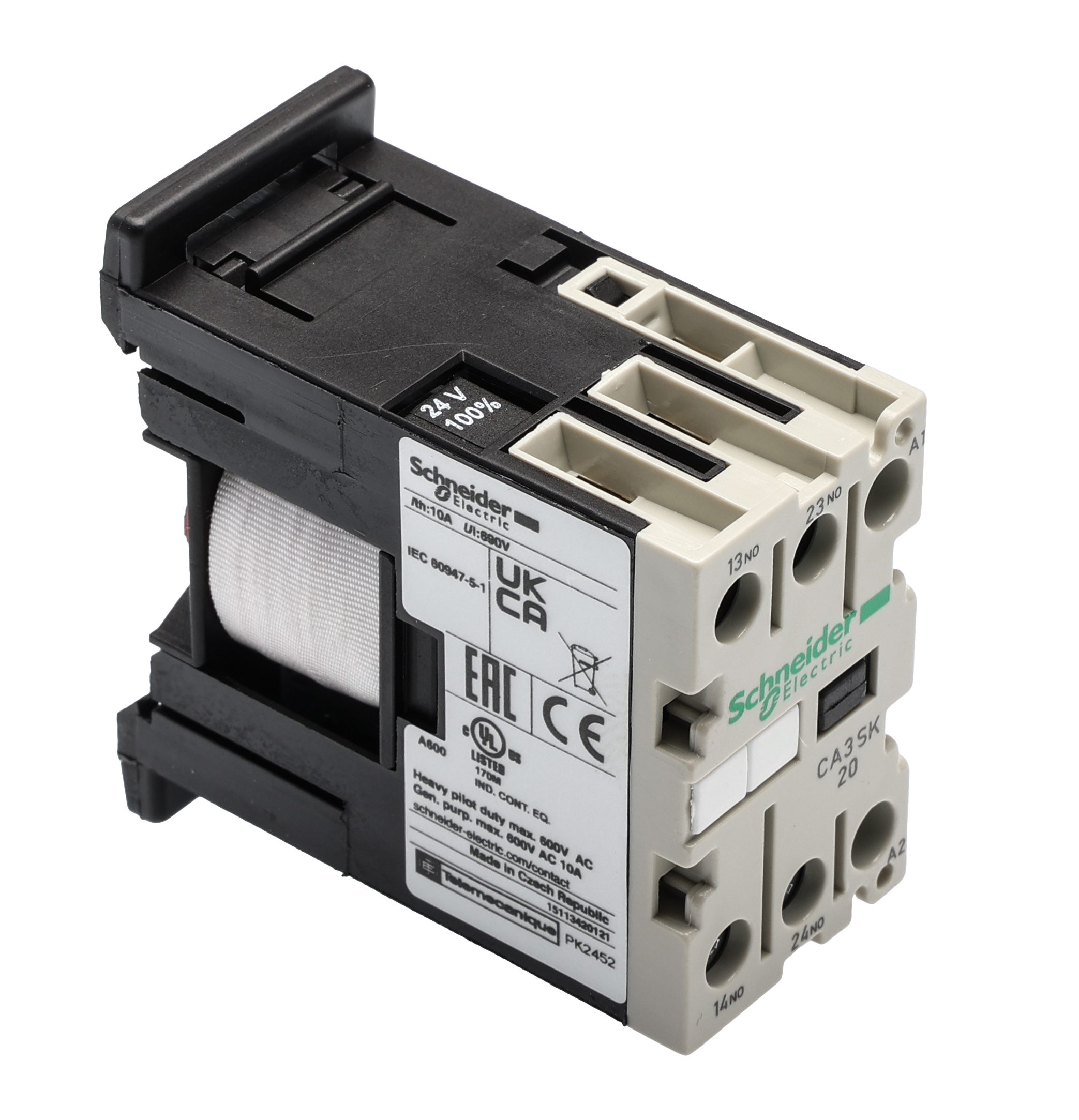 Control Relays with Screw Clamp Termination Consistent connection tightness Power consumption for Vac types 4.5 VA Power consumption for Vdc types 2.4 W Current rating 10A Ith Resistance to vibration & temperature cycling Din or screw fixing Ideal for use with GV2-M motor circuit breakers Note Relays are positively guided.