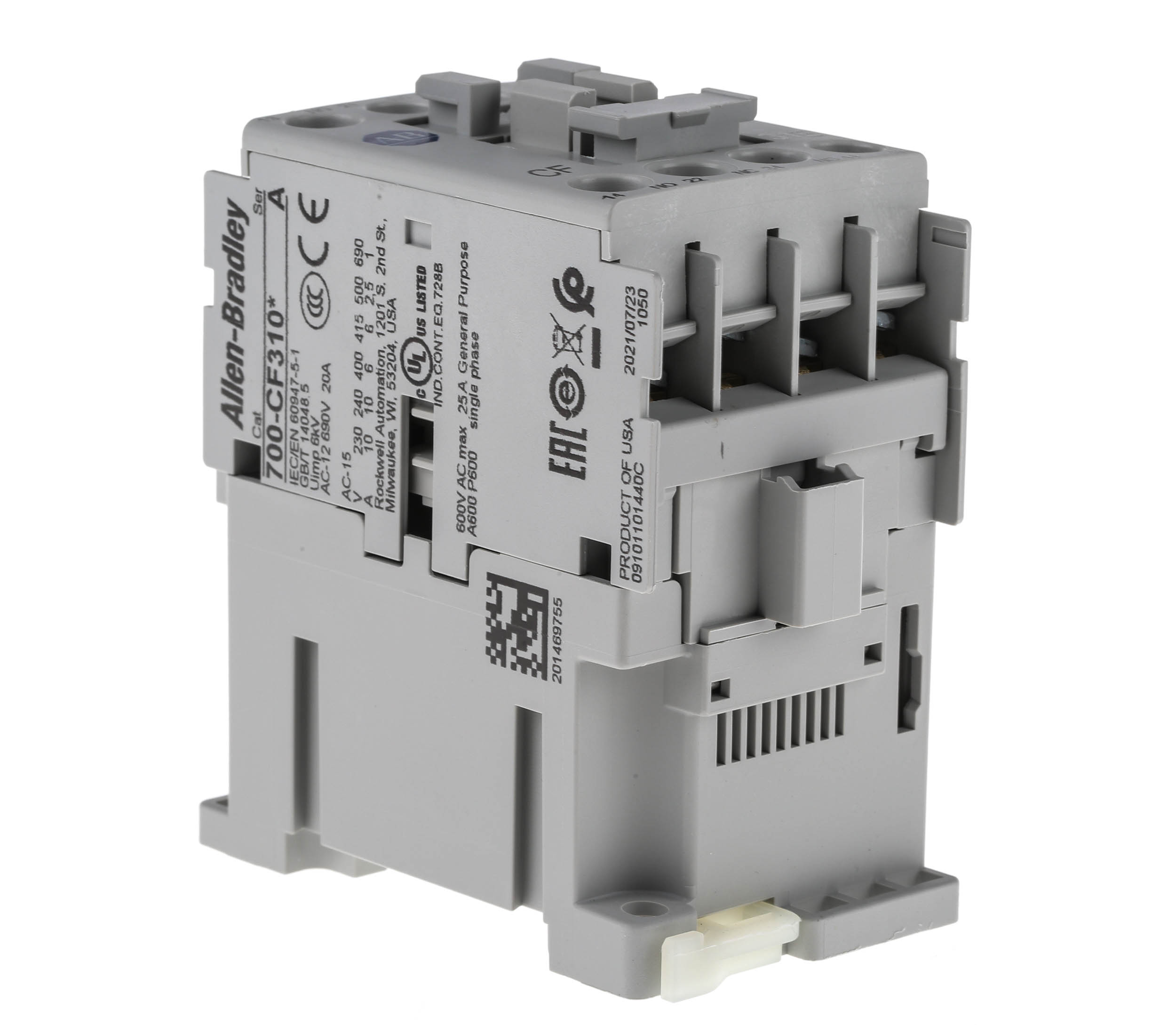 AC Control Relays 700-C Series DIN rail or surface mounting Contact Rating: 25A (AC1) Max. Rated Voltage: 690V Dimensions: H 80.5mm, W 45mm, D 81mm