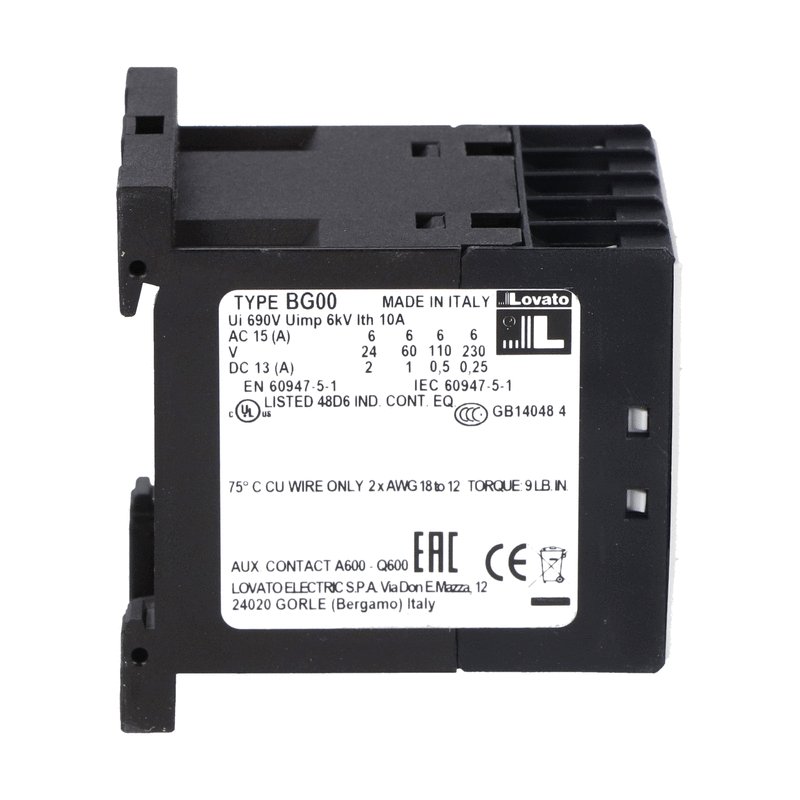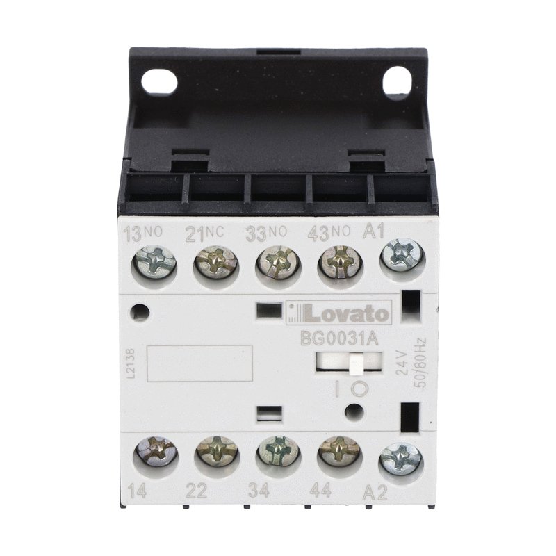 This is BG 4 Pole Contactor 3NO/1NC 10 A 24 V @ 50/60 Hz Coil manufactured by Lovato. The manufacturer part number is 11BG0031A024. It has a maximum operating temperature of +60°c. The rated contact current is 10 a. The product bg, is a highly preferred choice for users. Whereas, the minimum operating temperature of the product is -40°c. The coil voltage of the product is 24 v ac. Its accurate length is 58mm. It has 4p pole and throw configuration. The product is available in din rail style. Furthermore, the product is 44mm wide. The product comes in 57mm depth. The normal state configuration includes 3no + 1nc. It features orange range. The integrated contact has 690 v ac of voltage rating. It has equipped with 4 poles. The terminal is a screw type.