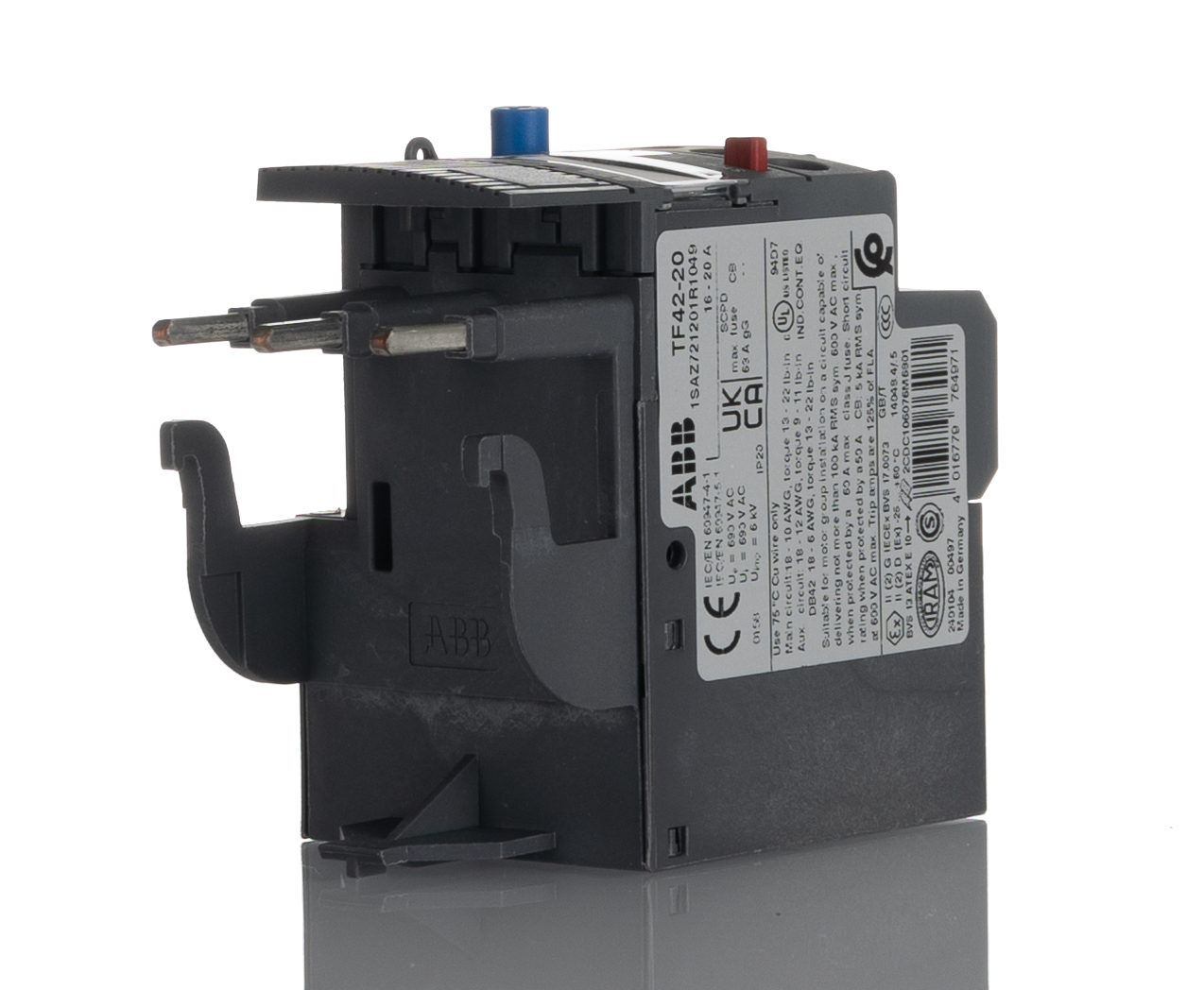 This is Thermal Overload Relay - 1NO + 1NC 16 → 20 A F.L.C 20 A Contact Rating 2.6 W 3P manufactured by ABB. The manufacturer part number is 1SAZ721201R1049 TF42-20. Moreover, it has a/an automatic, manual reset method . Whereas, the minimum operating temperature of the product is -25°c. It is created with 3p pole configuration . The product has -25 → +60 °c of operating temperature range. The rated contact current is 20 a. The product tf42, is a highly preferred choice for users. Its accurate length is 88.3mm. The product is available in direct contactor style. Furthermore, the product is 45mm wide. The product comes in 70.5mm depth. Features 600 v supply voltage. The normal state configuration includes 1no + 1nc. It has about 16 → 20 a FLC motor rating . It features af range range. Feature 2.6 w of power rating. The integrated contact has 690 v ac/dc of voltage rating. It has a maximum operating temperature of +60°c. The terminal is a screw type. It is composed of [Number of Auxiliary Contacts] auxiliary contacts.