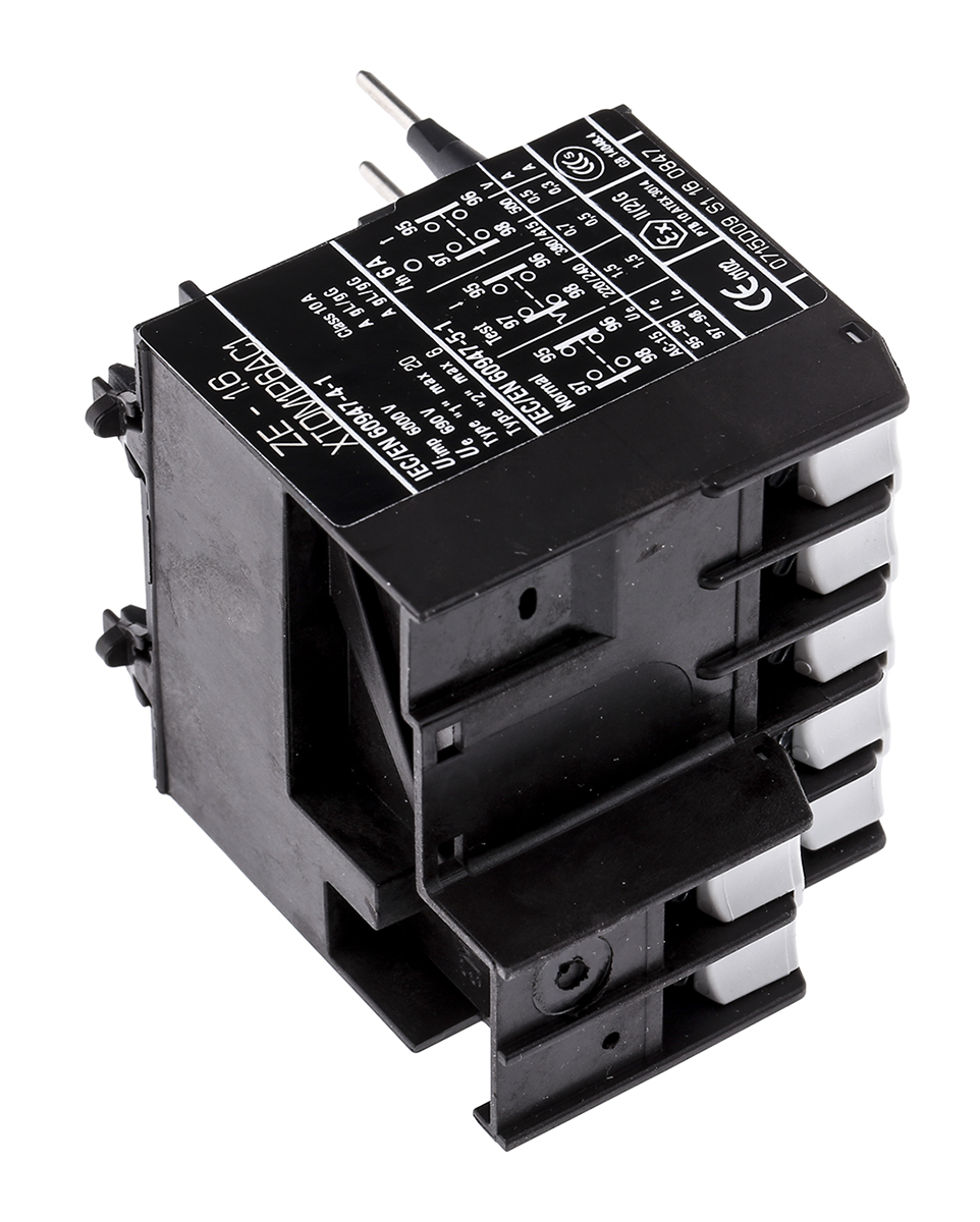 This is Overload Relay - 1NO + 1NC 1 → 1.6 A F.L.C 1.6 A Contact Rating 6 W 600 Vac manufactured by Eaton. The manufacturer part number is 014432 ZE-1,6. Moreover, it has a/an automatic, manual reset method . The normal state configuration includes 1no + 1nc. The product has -5 → +55 °c of operating temperature range. The rated contact current is 1.6 a. The product ze, is a highly preferred choice for users. It has 600 vac control voltage . Whereas, the minimum operating temperature of the product is -5°c. Its accurate length is 106mm. The product is available in direct contactor style. Furthermore, the product is 45mm wide. The product comes in 58mm depth. It is composed of [Number of Auxiliary Contacts] auxiliary contacts. It has about 1 → 1.6 a FLC motor rating . Feature 6 w of power rating. The integrated contact has 690 v ac of voltage rating. It has a maximum operating temperature of +55°c. The terminal is a screw type.