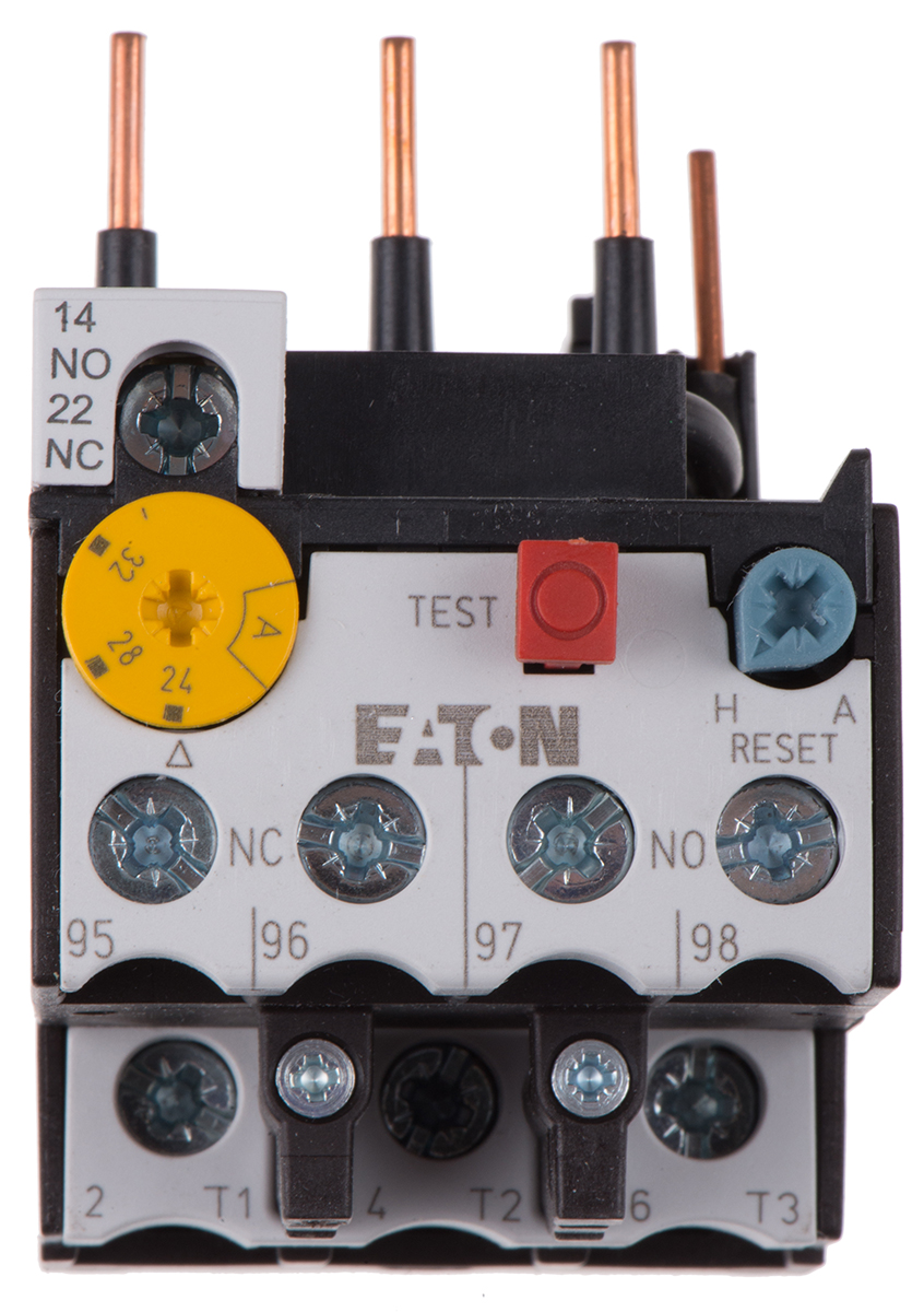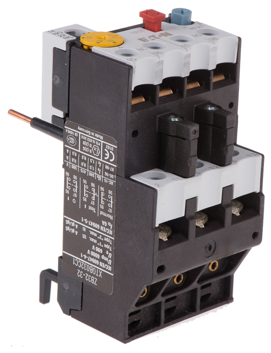 This is Overload Relay - 1NO + 1NC 24 → 32 A F.L.C 32 A Contact Rating 6 W 500 Vac manufactured by Eaton. The manufacturer part number is 278454 ZB32-32. Moreover, it has a/an automatic, manual reset method . The normal state configuration includes 1no + 1nc. The product has -25 → +55 °c of operating temperature range. The rated contact current is 32 a. The product zb, is a highly preferred choice for users. It has 500 vac control voltage . Whereas, the minimum operating temperature of the product is -25°c. Its accurate length is 96mm. The product is available in direct contactor style. Furthermore, the product is 45mm wide. The product comes in 96mm depth. It is composed of [Number of Auxiliary Contacts] auxiliary contacts. It has about 24 → 32 a FLC motor rating . Feature 6 w of power rating. The integrated contact has 690 v ac of voltage rating. It has a maximum operating temperature of +55°c. The terminal is a screw type.