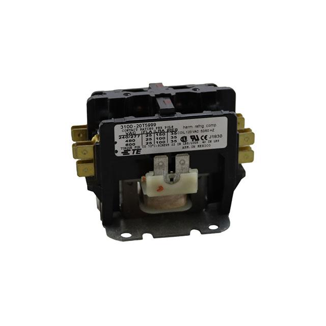 This is manufactured by TE Connectivity Potter & Brumfield Relays. The manufacturer part number is 3100-20T5999. It is assigned with possible HTSUS value of 8536.49.0065. The product is rohs3 compliant. The coil voltage of the product is 120vac. Moreover, it has screw terminal, quick connect - 0.250" (6.3mm) terminal style. The product has -40°c ~ 65°c operating temperature range. It holds up to 250ohms coil resistance. The product's switching voltage is 600vac - max. Robust coil power of 7va. In addition, it is reach affected. On the other hand, 88 vac is the given crucial/must operating voltage. The te connectivity potter & brumfield relays's product offers user-desired applications. It also has a dpst-no (dm) (2 form x) contact form. Its typical moisture sensitivity level is not applicable. While the must release voltage is a 20 vac. It has a contact current rating of 26 a. The splendid features of the product include insulation - class b. The product is available in chassis mount configuration. The product 3100, products unlimited, is a highly preferred choice for users. In addition, bulk is the available packaging type of the product. The product is designated with the ear99 code number. Moreover, it corresponds to 3100, a base product number of the product. The product is made from sturdy silver cadmium oxide (agcdo) materials.