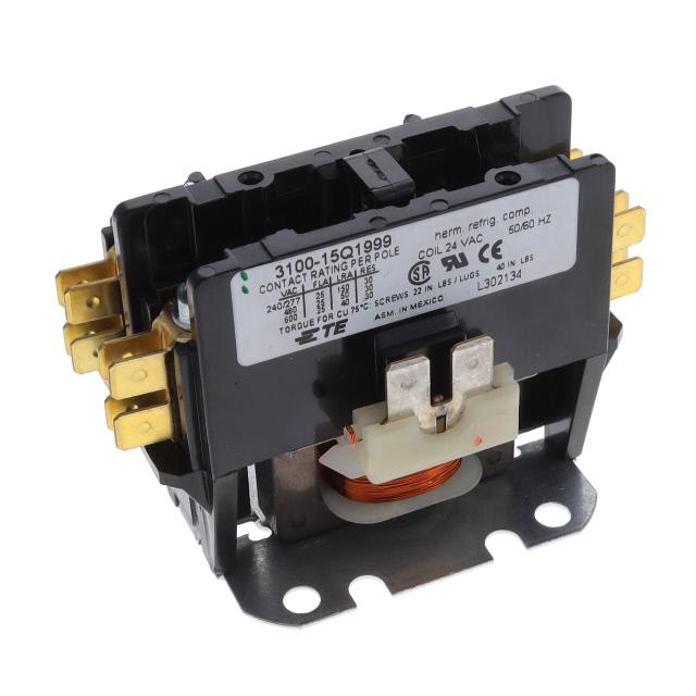 This is manufactured by TE Connectivity Potter & Brumfield Relays. The manufacturer part number is 3100-15Q1999. It is assigned with possible HTSUS value of 8536.41.0045. The product is rohs3 compliant. The coil voltage of the product is 24vac. Moreover, it has screw terminal, quick connect - 0.250" (6.3mm) terminal style. The product has -40°c ~ 65°c operating temperature range. It holds up to 16.5ohms coil resistance. The product's switching voltage is 600vac - max. Robust coil power of 5.3va. In addition, it is reach affected. On the other hand, 18 vac is the given crucial/must operating voltage. It is shipped in bulk package . It also has a spst-no (dm) (1 form x) contact form. Its typical moisture sensitivity level is 1 (unlimited). While the must release voltage is a 6 vac. It has a contact current rating of 25 a. The splendid features of the product include insulation - class b. The product is available in chassis mount configuration. The product 3100, products unlimited, is a highly preferred choice for users. The product is designated with the ear99 code number. Moreover, it corresponds to 3100-15, a base product number of the product. The product is made from sturdy silver cadmium oxide (agcdo) materials.