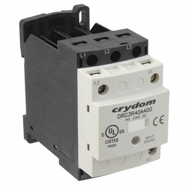 This is manufactured by Sensata-Crydom. The manufacturer part number is DRC3R40A400. It carries 7.6 a maximum load current. Its load voltage range is about 48 v ac → 400v ac . The product is available in din rail mount configuration. The product drc, is a highly preferred choice for users. Moreover, it has a typical 208 v ac → 265 v ac control voltage range . Its accurate length is 45.31mm. In addition, the height is 86.71mm. The product comes in 96.02mm depth. Whereas, the minimum operating temperature of the product is -30°c. It has a maximum operating temperature of +80°c. It has equipped with 3 poles. The terminal is a screw type. It is assigned with possible HTSUS value of 8536.49.0065. The product is rohs compliant. Moreover, it has screw terminal terminal style. Moreover, the product comes in module. The possible product's input voltage is 208 ~ 265vac. It has a typical 7.6 a load current. Furthermore, it has aac output. It is shipped in bulk package . Its typical moisture sensitivity level is 1 (unlimited). It has an integral 3pst-no (3 form a) circuit. The product is available in chassis mount, din rail configuration. The product solicon drc, is a highly preferred choice for users. The given load voltage is 48 ~ 415v. Moreover, it corresponds to drc3r40a, a base product number of the product. The product is designated with the ear99 code number.