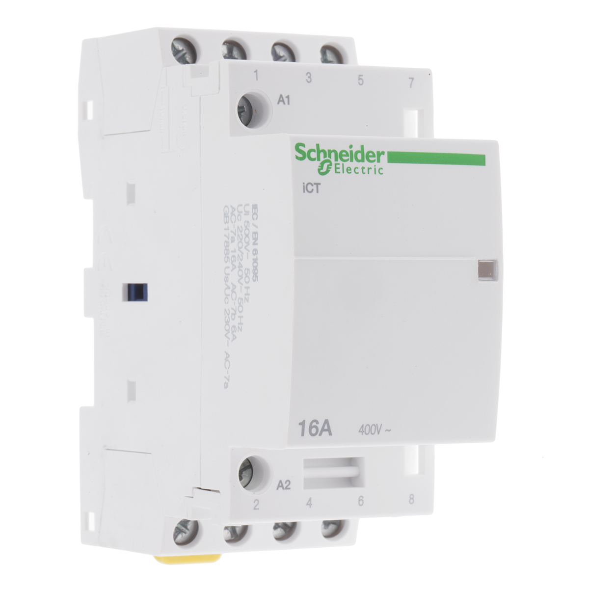 This is Acti 9 iCT Contactor 4NO 16 A 1.6 W 220 → 240 V ac Coil manufactured by Schneider Electric. The manufacturer part number is A9C22814. Better World Verification Options - green premium. Is it a better world product? yes. It has a maximum operating temperature of +60°c. The normal state configuration includes 4no. The rated contact current is 16 a. The product ict, is a highly preferred choice for users. Whereas, the minimum operating temperature of the product is -5°c. The coil voltage of the product is 230 v ac. Its accurate length is 36mm. It has 4p pole and throw configuration. Furthermore, the product is 81mm wide. The product comes in 68mm depth. It features acti9 ict range. The integrated contact has 400 v ac of voltage rating. It has equipped with 4 poles. The terminal is a screw type.