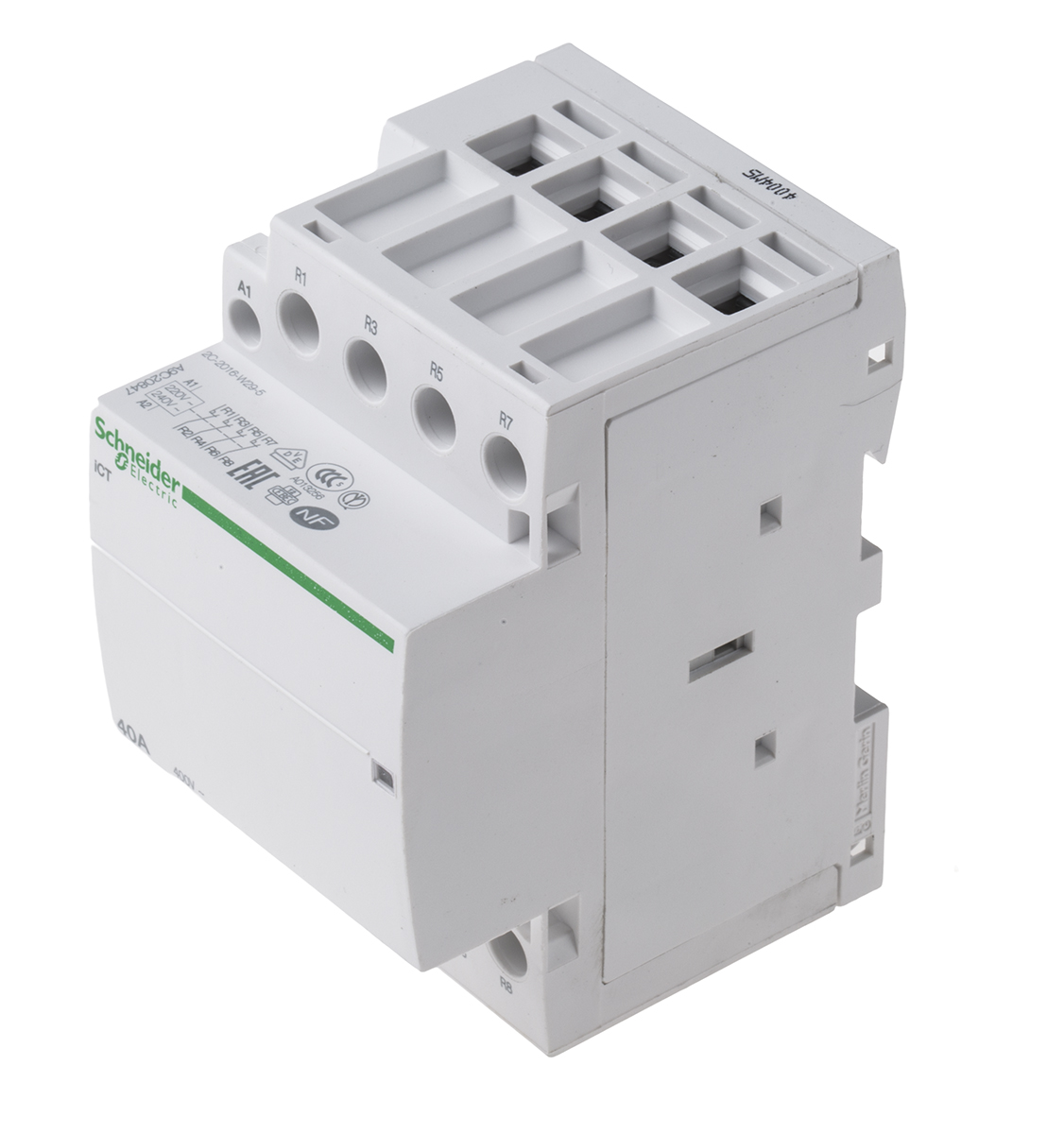 This is Acti 9 iCT Contactor 40 A 2.1 W 220 → 240 V ac Coil manufactured by Schneider Electric. The manufacturer part number is A9C20847. Better World Verification Options - green premium. Is it a better world product? yes. It has a maximum operating temperature of +60°c. The normal state configuration includes 4nc. The rated contact current is 40 a. The product ict, is a highly preferred choice for users. Whereas, the minimum operating temperature of the product is -5°c. The coil voltage of the product is 230 v ac. Its accurate length is 54mm. It has 4p pole and throw configuration. Furthermore, the product is 85mm wide. The product comes in 68mm depth. It features acti9 ict range. The integrated contact has 400 v ac of voltage rating. It has equipped with 4 poles. The terminal is a screw type.