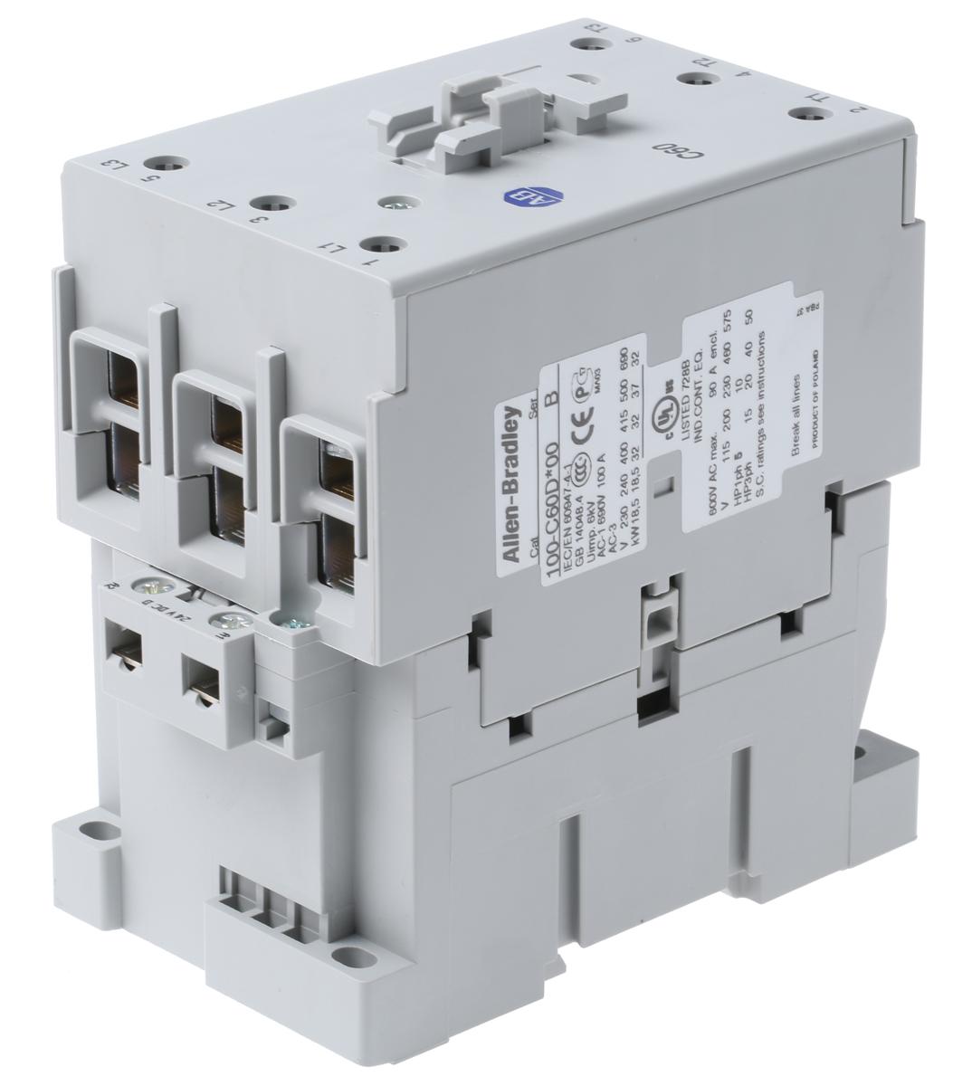This is 100 Series 100C 3 Pole Contactor 3NO 60 A 32 kW 24 V dc Coil manufactured by Allen Bradley. The manufacturer part number is 100-C60DJ00. It has a maximum operating temperature of +60°c. The rated contact current is 60 a. The product 100c, is a highly preferred choice for users. Whereas, the minimum operating temperature of the product is -25°c. The coil voltage of the product is 24 v dc. Its accurate length is 81mm. Furthermore, the product is 45mm wide. The product comes in 86.5mm depth. The normal state configuration includes 3no. It features 100 series range. Feature 32 kw of power rating. The integrated contact has 690 v ac of voltage rating. It has equipped with 3 poles. The terminal is a screw type.
