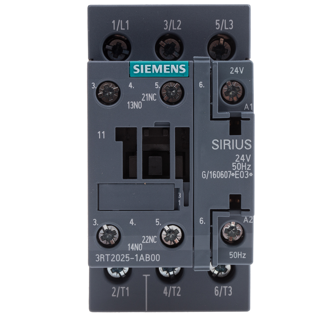 Contactors – 3RT2 Range The 3RT2 contactors are climate-proof and are suitable and tested for use worldwide, sizes S00 to S2, up to 37 kW Size S00, up to 7.5 kW Size S0, up to 18.5 kW Size S2, up to 37 kW Screw connection / Spring Clamp Impulse voltage resistance 6 kV Insulation voltage 690 V Real loss power only 4 W Designation K according to DIN 40719 (extendable to IEC 204-2) & IEC 750; Q according to DIN EN 61346-2 Note Screw terminals can only be used with screw terminal overloads and spring terminals can only be used with spring terminal overloads. Approvals CE, UL, CSA, CCC Siemens Sirius Range Contactor & Control Relays Siemens control gear for feeders up to 5.5kW. The complementary nature of the devices allows fast and simple assembly, for example, of motor starters and reversers. A perfect match between contactors, overloads, circuit breakers and accessories for the same power ratings provides a uniform panel appearance and the standard widths with no side-by-side mounting derating allows for space saving.