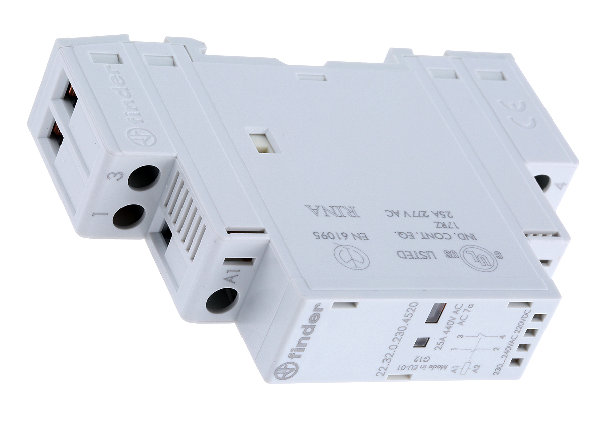 This is SPDT Non-Latching Relay DIN Rail 240V ac Coil 25 A manufactured by Finder. The manufacturer part number is 22.32.0.230.4520. The rated contact current is 25 a. The product 22, is a highly preferred choice for users. The coil voltage of the product is 240 v ac. Its accurate length is 17.5mm. The product is available in din rail style. The product comes in 60.8mm depth. Whereas, the minimum operating temperature of the product is -20°c. It has a maximum operating temperature of +50°c. It has equipped with 2 poles. The terminal is a screw type.