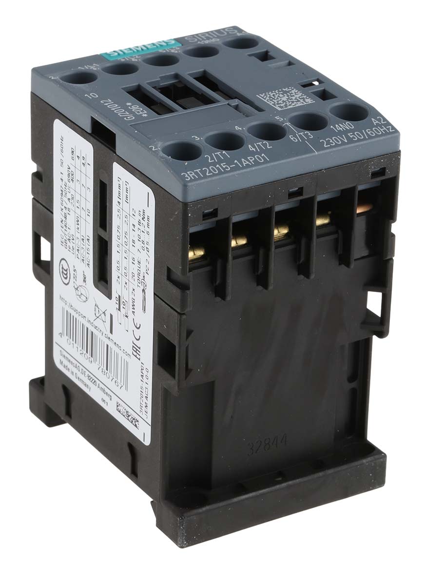 Contactors – 3RT2 Range The 3RT2 contactors are climate-proof and are suitable and tested for use worldwide, sizes S00 to S2, up to 37 kW Size S00, up to 7.5 kW Size S0, up to 18.5 kW Size S2, up to 37 kW Screw connection / Spring Clamp Impulse voltage resistance 6 kV Insulation voltage 690 V Real loss power only 4 W Designation K according to DIN 40719 (extendable to IEC 204-2) & IEC 750; Q according to DIN EN 61346-2 Note Screw terminals can only be used with screw terminal overloads and spring terminals can only be used with spring terminal overloads. Approvals CE, UL, CSA, CCC Siemens Sirius Range Contactor & Control Relays Siemens control gear for feeders up to 5.5kW. The complementary nature of the devices allows fast and simple assembly, for example, of motor starters and reversers. A perfect match between contactors, overloads, circuit breakers and accessories for the same power ratings provides a uniform panel appearance and the standard widths with no side-by-side mounting derating allows for space saving.