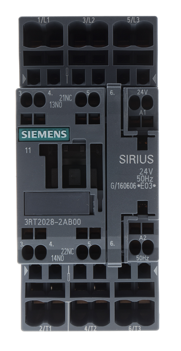 This is Sirius Innovation 3RT2 3 Pole Contactor 3NO 38 A (AC3) 18.5 kW (AC3) 24 V ac Coil manufactured by Siemens. The manufacturer part number is 3RT2028-2AB00. It has a maximum operating temperature of +60°c. Is it a better world product? yes. The normal state configuration includes 3no. The rated contact current is 38 a. The product size s0, 3rt2, is a highly preferred choice for users. Whereas, the minimum operating temperature of the product is -25°c. The coil voltage of the product is 24 v ac. Its accurate length is 102mm. Furthermore, the product is 45mm wide. The product comes in 97mm depth. It is composed of [Number of Auxiliary Contacts] auxiliary contacts. It features sirius 3rt range. Feature 18.5 kw of power rating. The integrated contact has 400 v ac of voltage rating. It has equipped with 3 poles. The terminal is a cage clamp type.