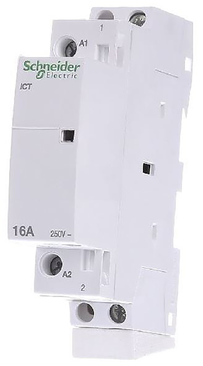 This is Acti 9 iCT Contactor 1NO 16 A 1.3 W 12 V ac Coil manufactured by Schneider Electric. The manufacturer part number is A9C22011. Better World Verification Options - green premium. Is it a better world product? yes. It has a maximum operating temperature of +60°c. The normal state configuration includes 1no. The rated contact current is 16 a. The product ict, is a highly preferred choice for users. Whereas, the minimum operating temperature of the product is -5°c. The coil voltage of the product is 12 v ac. Its accurate length is 18mm. It has sp pole and throw configuration. Furthermore, the product is 81mm wide. The product comes in 68mm depth. It features acti9 ict range. The integrated contact has 250 v ac of voltage rating. It has equipped with 1 poles. The terminal is a screw type.