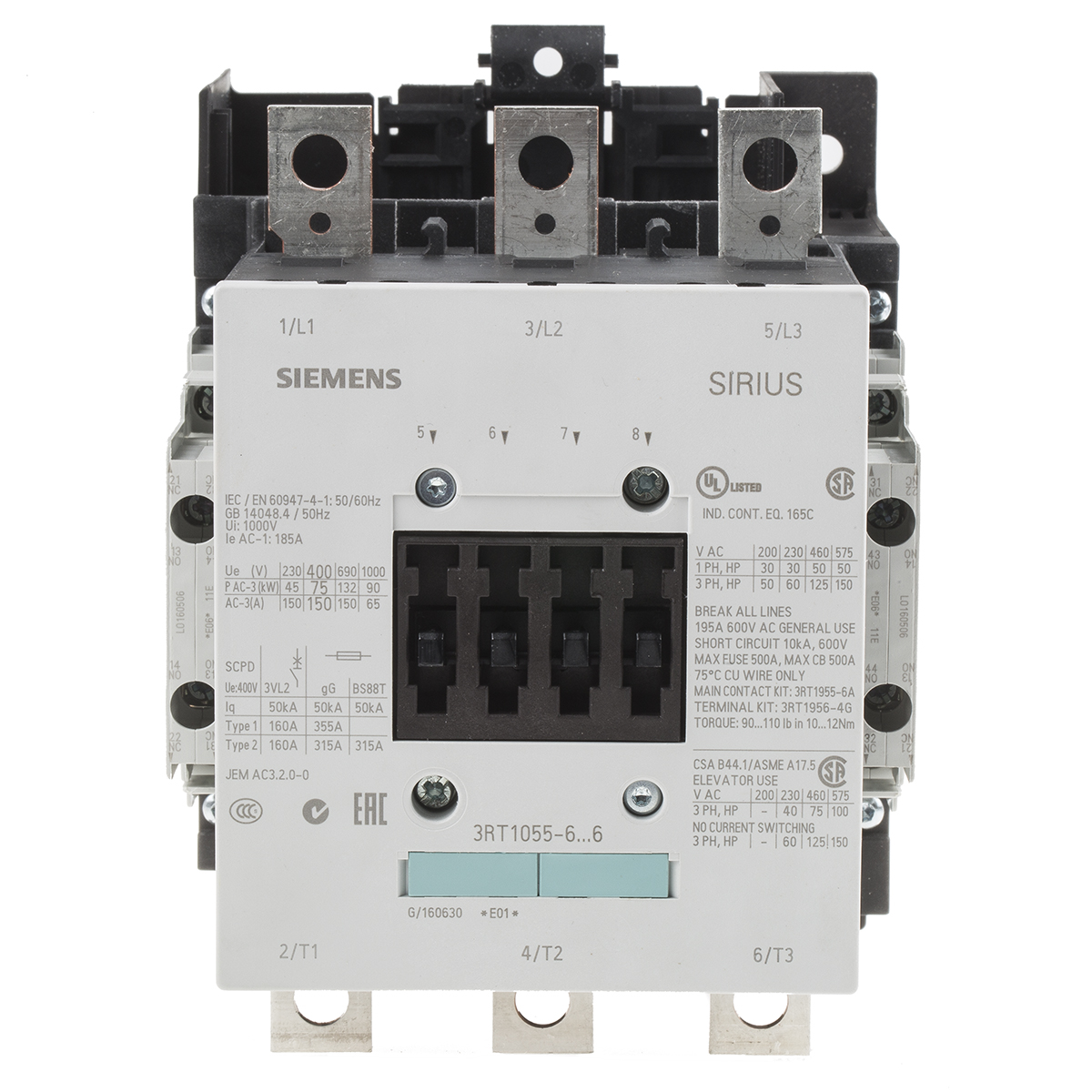 This is Sirius Classic 3RT1 3 Pole Contactor 3NO 150 A (AC3) 75 kW (AC3) manufactured by Siemens. The manufacturer part number is 3RT1055-6LA06. It has a maximum operating temperature of +60°c. The rated contact current is 150 a. The product 3rt1, is a highly preferred choice for users. Whereas, the minimum operating temperature of the product is -25°c. The coil voltage of the product is 400 v ac. Its accurate length is 120mm. Furthermore, the product is 170mm wide. The product comes in 169mm depth. It is composed of [Number of Auxiliary Contacts] auxiliary contacts. The normal state configuration includes 3no. It features sirius range. Feature 75 kw of power rating. The integrated contact has 400 v ac of voltage rating. It has equipped with 3 poles. The terminal is a screw type.