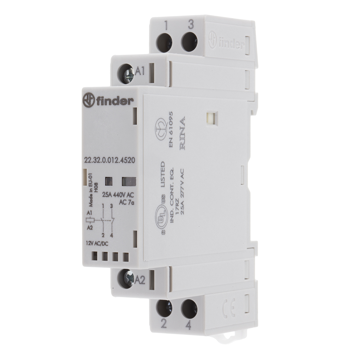 This is 22 Series 2 Pole Contactor NO/NC 25 A 2 VA 12 V dc Coil manufactured by Finder. The manufacturer part number is 22.32.0.012.4520. It has a maximum operating temperature of +50°c. The rated contact current is 25 a. The product 22, is a highly preferred choice for users. Whereas, the minimum operating temperature of the product is -25°c. The coil voltage of the product is 12 v dc. Its accurate length is 84mm. Furthermore, the product is 17.5mm wide. The product comes in 60.8mm depth. It is composed of [Number of Auxiliary Contacts] auxiliary contacts. The normal state configuration includes 1no + 1nc. In addition, it has a standard 1no + 1nc auxiliary contact configuration . Feature 2.2 w of power rating. The integrated contact has 250 v ac, 440 v ac of voltage rating. It has equipped with 2 poles. The terminal is a screw type.