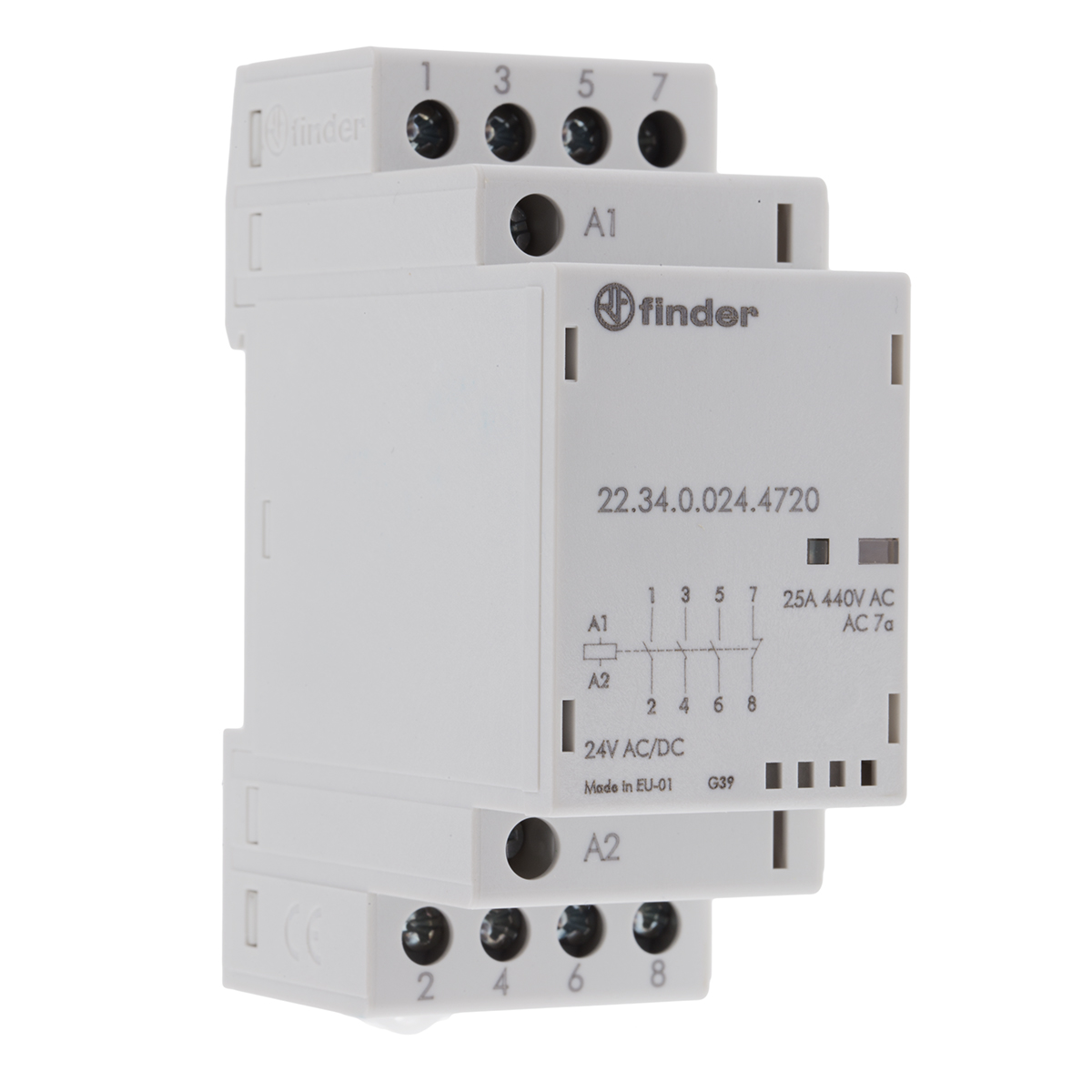 This is 3PDT Non-Latching Relay DIN Rail 24V ac/dc Coil 25 A manufactured by Finder. The manufacturer part number is 22.34.0.024.4720. Whereas, the minimum operating temperature of the product is -20°c. The rated contact current is 25 a. The product 22, is a highly preferred choice for users. The coil voltage of the product is 24 v ac/dc. Its accurate length is 35mm. The product is available in din rail style. The product comes in 60.8mm depth. It has a maximum operating temperature of +50°c. It has equipped with 4 poles. The terminal is a screw type.
