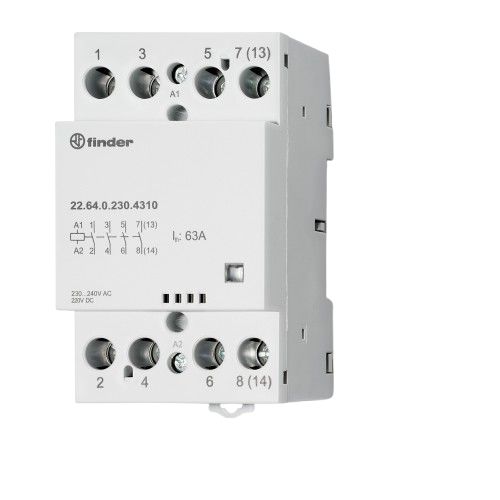 This is 4NO DIN Rail Non-Latching Relay 240V ac Coil 63 A manufactured by Finder. The manufacturer part number is 22.64.0.230.4310. Whereas, the minimum operating temperature of the product is -5°c. The rated contact current is 63 a. The product 22, is a highly preferred choice for users. The coil voltage of the product is 240 v ac. Its accurate length is 53.5mm. The product is available in din rail style. The product comes in 63.1mm depth. It has a maximum operating temperature of +55°c. It has equipped with 4 poles. The terminal is a screw type.
