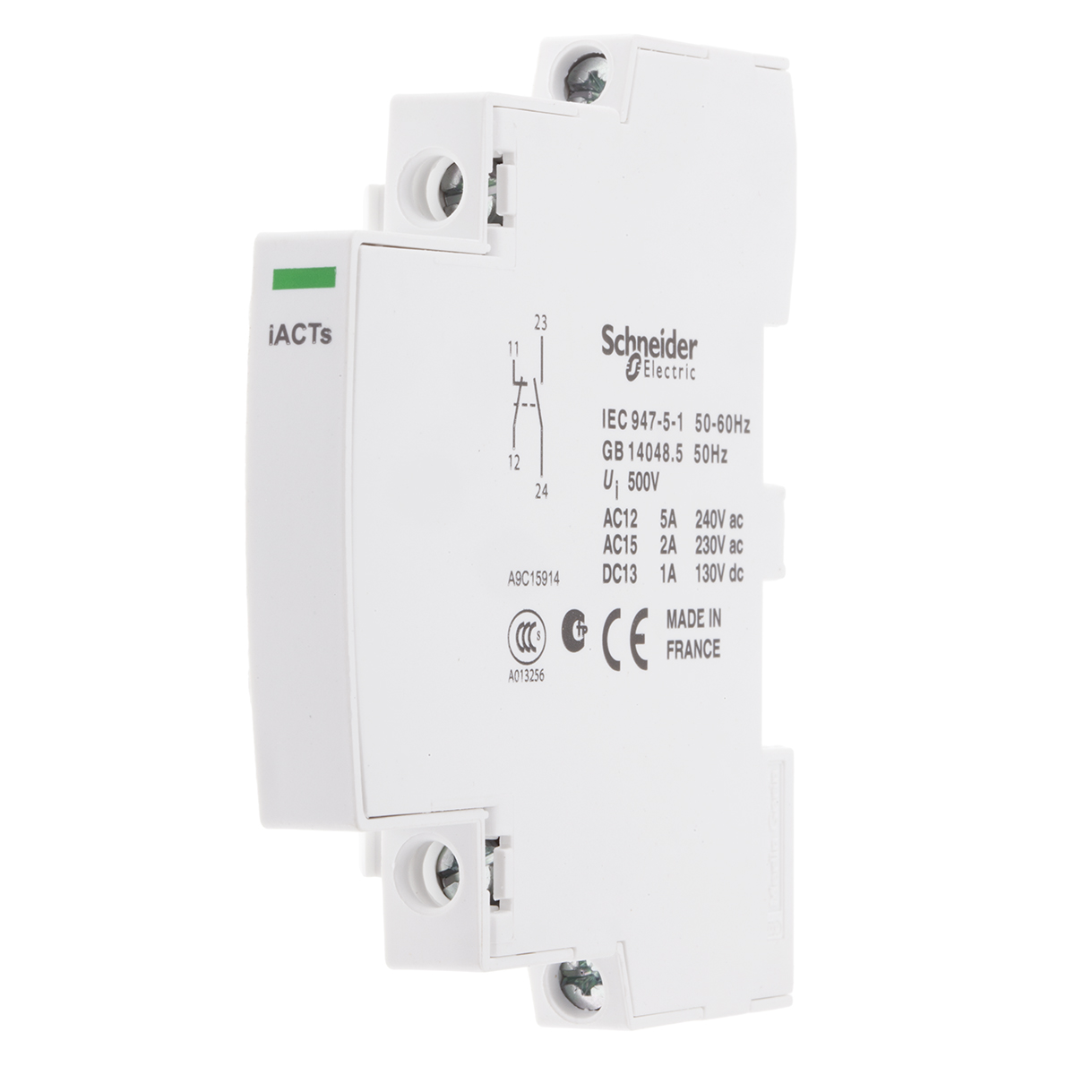 This is Acti 9 iACT Contactor NO/NC manufactured by Schneider Electric. The manufacturer part number is A9C15914. It has a maximum operating temperature of +50°c. The normal state configuration includes 1no + 1nc. The product iact, is a highly preferred choice for users. Whereas, the minimum operating temperature of the product is -5°c. It has dp pole and throw configuration. The product is available in din rail mount style. It features acti9 ict range. The integrated contact has 24 → 130 v dc, 24 → 240 v ac of voltage rating. It has equipped with 2 poles. The terminal is a screw type.