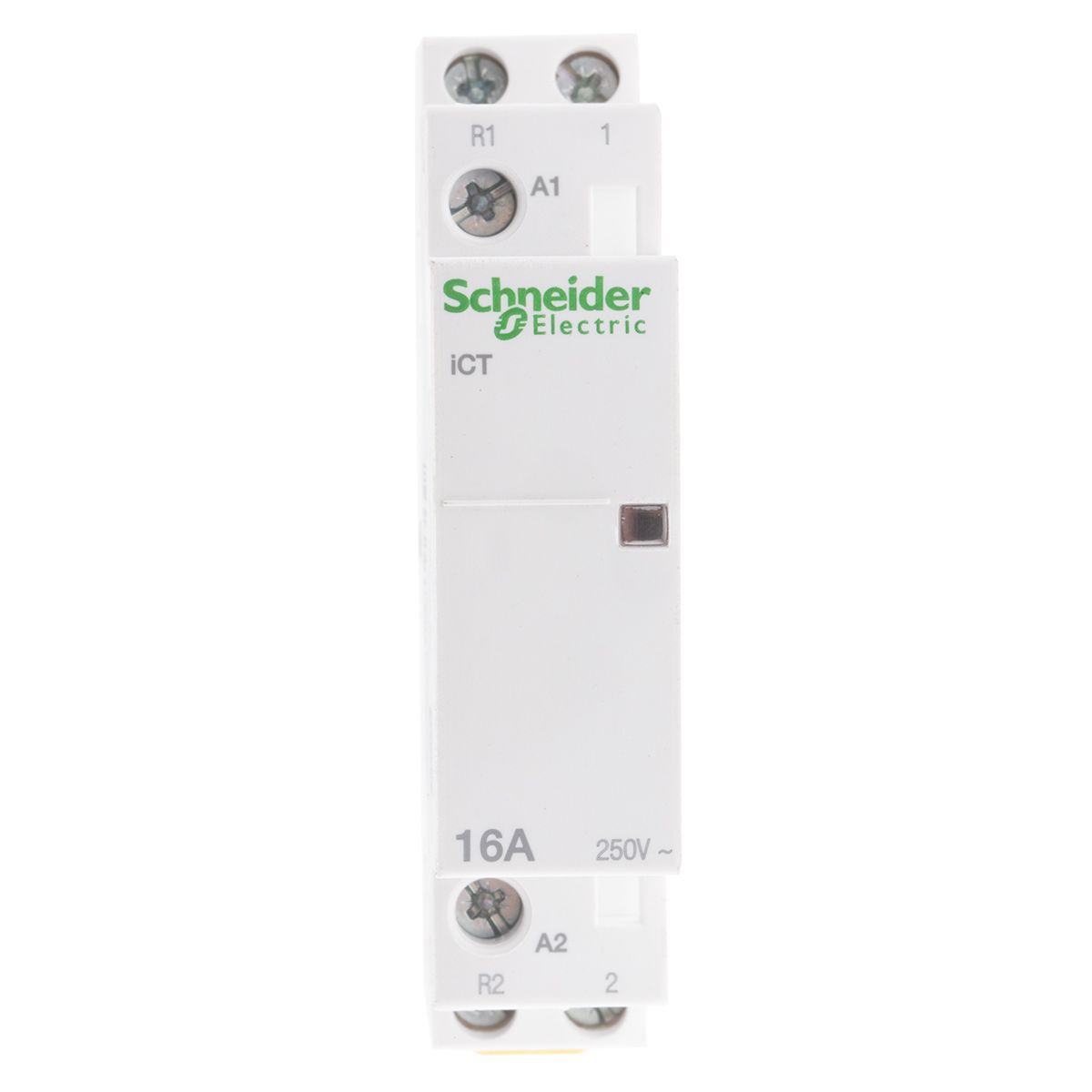 This is Acti 9 iCT Contactor 16 A 1.3 W 12 V ac Coil manufactured by Schneider Electric. The manufacturer part number is A9C22015. Better World Verification Options - green premium. Is it a better world product? yes. It has a maximum operating temperature of +60°c. The normal state configuration includes 1no + 1nc. The rated contact current is 16 a. The product ict, is a highly preferred choice for users. Whereas, the minimum operating temperature of the product is -5°c. The coil voltage of the product is 12 v ac. Its accurate length is 18mm. It has dp pole and throw configuration. Furthermore, the product is 81mm wide. The product comes in 68mm depth. It features acti9 ict range. The integrated contact has 250 v ac of voltage rating. It has equipped with 2 poles. The terminal is a screw type.
