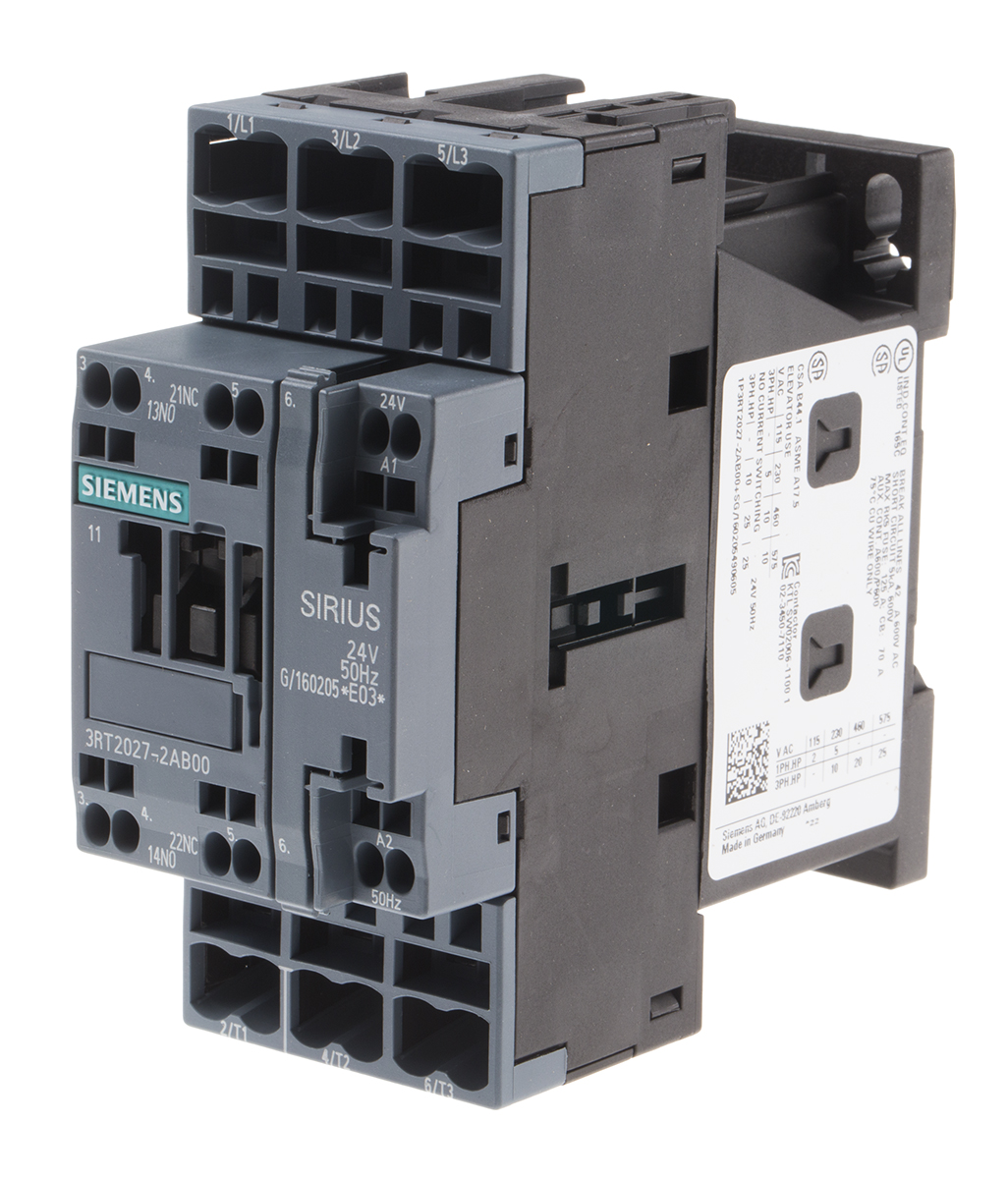 This is Sirius Innovation 3RT2 3 Pole Contactor 3NO 32 A (AC3) 15 kW (AC3) 24 V ac Coil manufactured by Siemens. The manufacturer part number is 3RT2027-2AB00. It has a maximum operating temperature of +60°c. Is it a better world product? yes. The normal state configuration includes 3no. The rated contact current is 32 a. The product size s0, 3rt2, is a highly preferred choice for users. Whereas, the minimum operating temperature of the product is -25°c. The coil voltage of the product is 24 v ac. Its accurate length is 102mm. Furthermore, the product is 45mm wide. The product comes in 97mm depth. It is composed of [Number of Auxiliary Contacts] auxiliary contacts. It features sirius 3rt range. Feature 15 kw of power rating. The integrated contact has 400 v ac of voltage rating. It has equipped with 3 poles. The terminal is a cage clamp type.