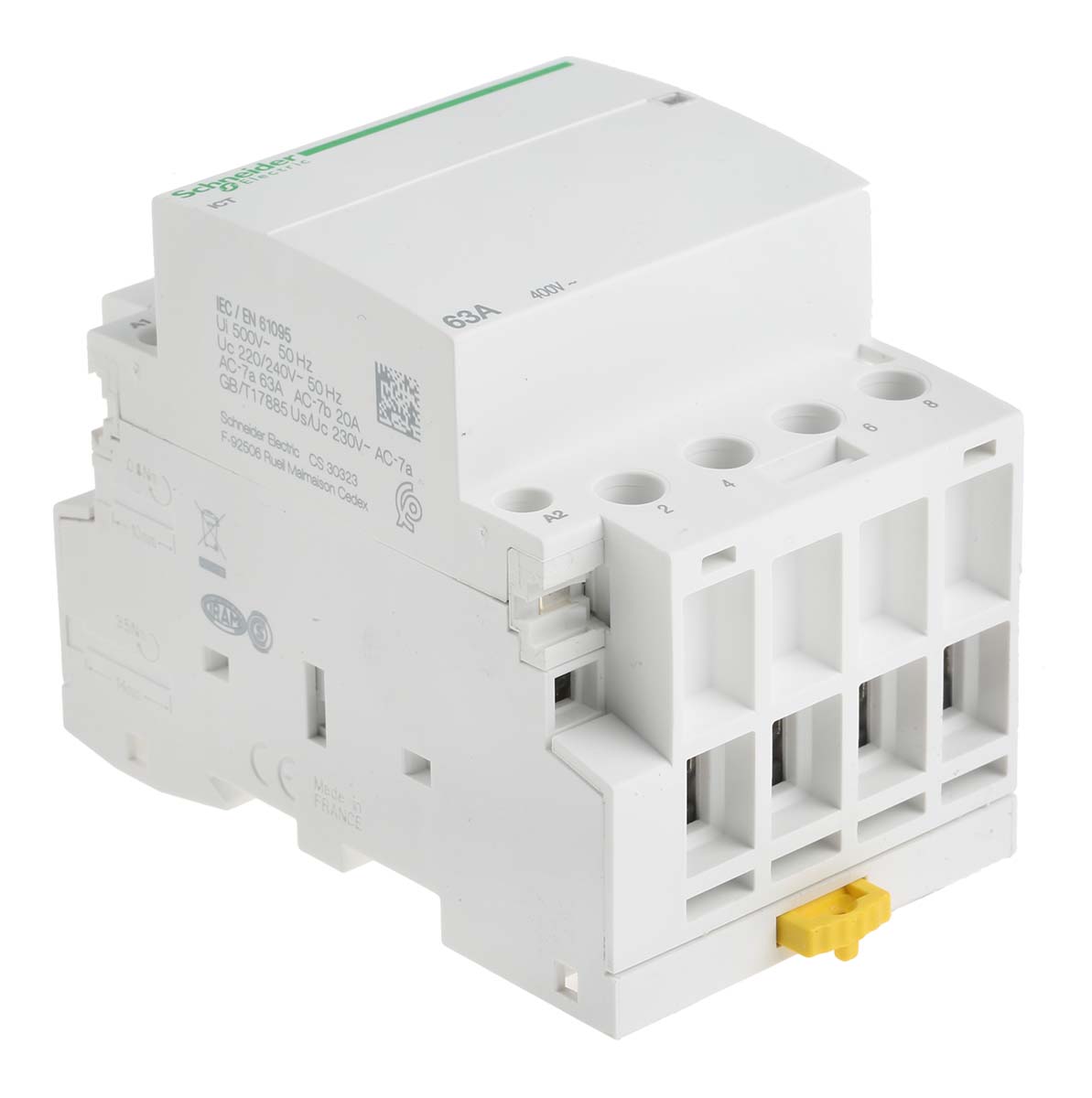 This is Acti 9 iCT Contactor 63 A 2.1 W 220 → 240 V ac Coil manufactured by Schneider Electric. The manufacturer part number is A9C20864. Better World Verification Options - green premium. Is it a better world product? yes. It has a maximum operating temperature of +60°c. The normal state configuration includes 4no. The rated contact current is 63 a. The product ict, is a highly preferred choice for users. Whereas, the minimum operating temperature of the product is -5°c. The coil voltage of the product is 230 v ac. Its accurate length is 54mm. It has 4p pole and throw configuration. Furthermore, the product is 85mm wide. The product comes in 68mm depth. It features acti9 ict range. The integrated contact has 400 v ac of voltage rating. It has equipped with 4 poles. The terminal is a screw type.