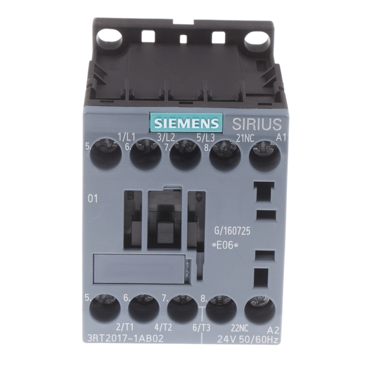 This is Sirius Innovation 3RT2 3 Pole Contactor 3NO 12 A (AC3) 5.5 kW (AC3) 24 V ac Coil manufactured by Siemens. The manufacturer part number is 3RT2017-1AB02. The coil voltage of the product is 24 v ac. It has 3p pole and throw configuration. Furthermore, the product is 45mm wide. It features sirius 3rt range. It has a typical 11a load current. The rated contact current is 12 a. It has a maximum operating temperature of +60°c. The terminal is a screw type. It has 24 v ac control voltage . Its accurate length is 57.5mm. Is it a better world product? yes. The product size s00, 3rt2, is a highly preferred choice for users. The product comes in 73mm depth. The product is available in screw mount, snap-on mount style. It is composed of [Number of Auxiliary Contacts] auxiliary contacts. The normal state configuration includes 3no. Feature 5.5 kw of power rating. The integrated contact has 400 v ac of voltage rating. It has equipped with 3 poles. Whereas, the minimum operating temperature of the product is -25°c.