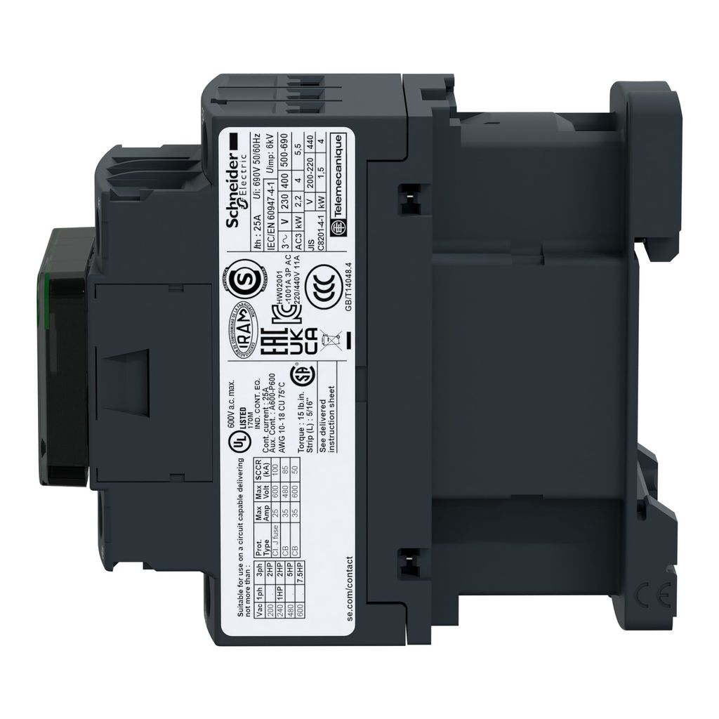 This is Tesys D LC1D 3 Pole Contactor 3NO (Main) NO/NC (Auxiliary) 12 A 72 V dc Coil manufactured by Schneider Electric. The manufacturer part number is LC1D12SD. Better World Verification Options - green premium. Is it a better world product? yes. The normal state configuration includes 3no. The rated contact current is 12 a. The product lc1d, is a highly preferred choice for users. The coil voltage of the product is 72 v dc. Its accurate length is 77mm. Furthermore, the product is 45mm wide. The product comes in 95mm depth. It is composed of [Number of Auxiliary Contacts] auxiliary contacts. It features tesys d range. In addition, it has a standard 1no + 1nc auxiliary contact configuration . The integrated contact has 690 v ac of voltage rating. It has equipped with 3 poles. The terminal is a screw type. The coil voltage of the product is 72vdc. Moreover, it has screw terminal terminal style. The product has -40°c ~ 70°c operating temperature range. The product's switching voltage is 690vac, 300vdc - max. On the other hand, 50.4 vdc is the given crucial/must operating voltage. The schneider electric's product offers user-desired applications. It also has a 3pst-no (3 form a) contact form. The operating time of the product is 72.45 ms. While the must release voltage is a 7.2 vdc. It has a long 5 weeks standard lead time. It has a contact current rating of 12 a. The splendid features of the product include auxiliary contacts, diode. The product is available in chassis mount, din rail configuration. The product tesys, is a highly preferred choice for users. While 24 ms is its release time. In addition, box is the available packaging type of the product.