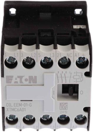 This is DILEEM DILEEM Contactor NO 15 A 3 kW 24 V dc Coil manufactured by Eaton. The manufacturer part number is DILEEM-01-G(24VDC). It has a maximum operating temperature of +50°c. The rated contact current is 6.6 a. The product dileem, is a highly preferred choice for users. Whereas, the minimum operating temperature of the product is -20°c. The coil voltage of the product is 24 v dc. Its accurate length is 58mm. Furthermore, the product is 52mm wide. The product comes in 45mm depth. It is composed of [Number of Auxiliary Contacts] auxiliary contacts. The normal state configuration includes 3no. It features xstart range. Feature 3 kw of power rating. The integrated contact has 690 v ac of voltage rating. It has equipped with 1 poles. The terminal is a screw type.