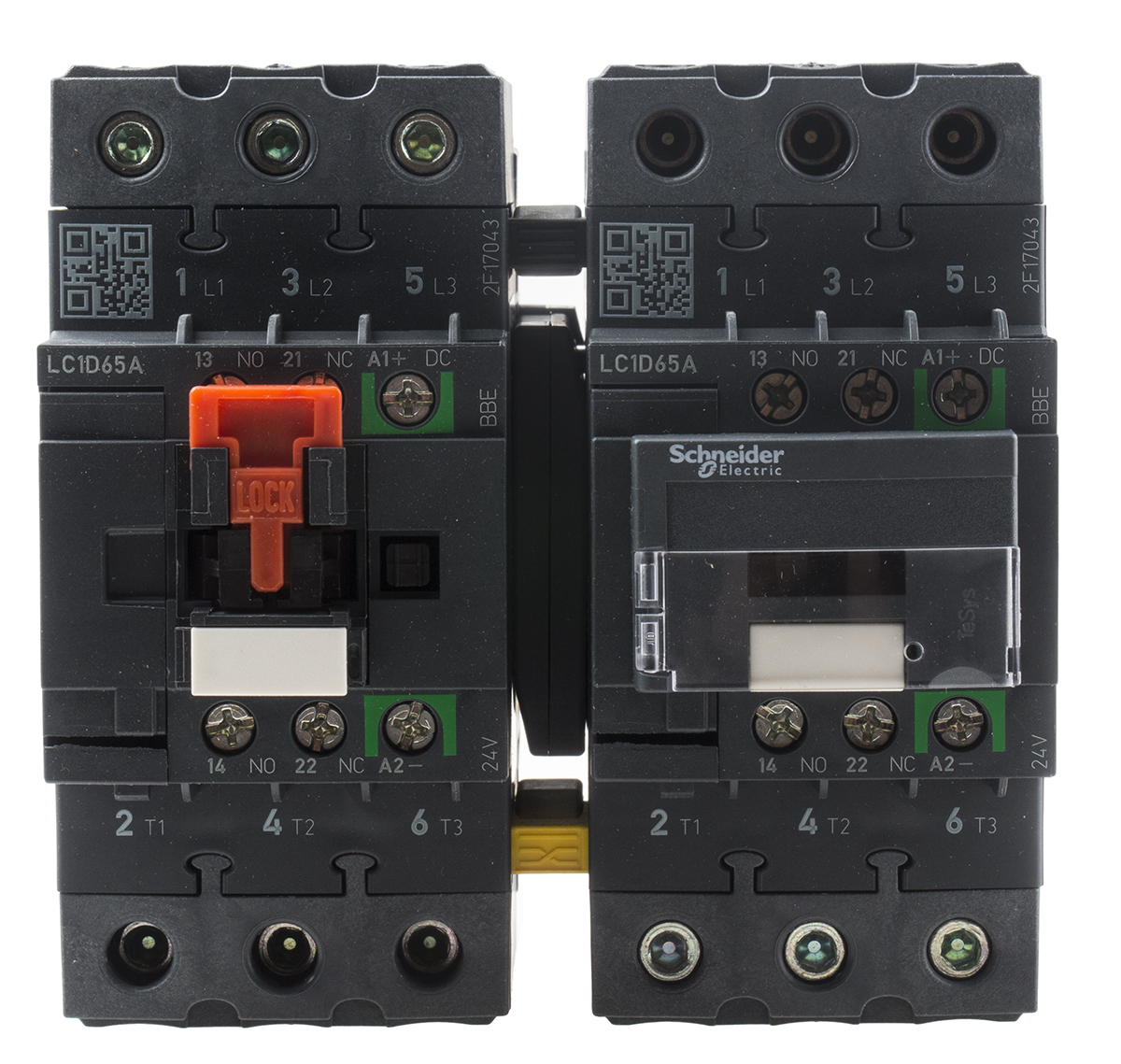 This is TeSys D Green LC2D 3 Pole Reversing Contactor 3NO 65 A 37 kW @ 660 → 690 V ac 24 V dc Coil manufactured by Schneider Electric. The manufacturer part number is LC2D65ABBE. The coil voltage of the product is 24 v dc. It has 3pst pole and throw configuration. Furthermore, the product is 120mm wide. It features tesys d range. It performs basic function of reversing. The rated contact current is 65 a. It has a maximum operating temperature of +60°c. The terminal is a screw type. The normal state configuration includes 3no. Its accurate length is 119mm. Better World Verification Options - green premium. Is it a better world product? yes. The product lc2d, is a highly preferred choice for users. The product comes in 122mm depth. The product is available in din rail mount style. It is composed of [Number of Auxiliary Contacts] auxiliary contacts. Whereas, the minimum operating temperature of the product is -25°c. In addition, it has a standard 1no + 1nc auxiliary contact configuration . Feature 30 kw of power rating. The integrated contact has 690 v ac of voltage rating. It has equipped with 3 poles.