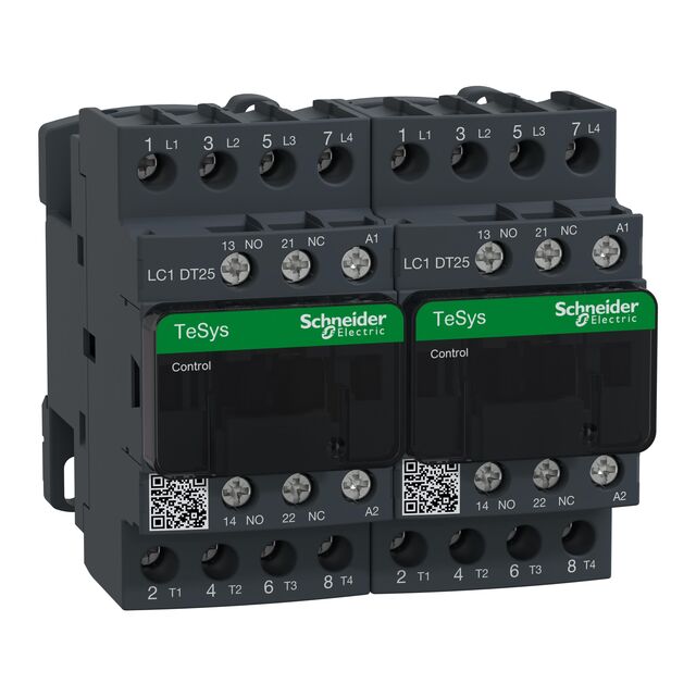 This is TeSys LC2D 4 Pole Reversing Contactor 4NO 25 A 0.85 → 1.1 V Coil manufactured by Schneider Electric. The manufacturer part number is LC2DT25G7. It performs basic function of reversing. Better World Verification Options - green premium. Is it a better world product? yes. It has a maximum operating temperature of +60°c. The rated contact current is 25 a. The product lc2d, is a highly preferred choice for users. Whereas, the minimum operating temperature of the product is -5°c. The coil voltage of the product is 120 v ac. Its accurate length is 90mm. Furthermore, the product is 90mm wide. The product comes in 85mm depth. It is composed of [Number of Auxiliary Contacts] auxiliary contacts. The normal state configuration includes 4no. It features tesys d range. The integrated contact has 300 v dc, 690 v ac of voltage rating. It has equipped with 4 poles. The terminal is a screw type. The coil voltage of the product is 120vac. Moreover, it has screw terminal terminal style. The product has -40°c ~ 60°c operating temperature range. On the other hand, 102 vac is the given crucial/must operating voltage. The schneider electric's product offers user-desired applications. It also has a 4pst-no (4 form a) contact form. The operating time of the product is 22 ms. While the must release voltage is a 36 vac. It has a long 5 weeks standard lead time. It has a contact current rating of 25 a. The splendid features of the product include auxiliary contacts. The product is available in chassis mount, din rail configuration. The product tesys, is a highly preferred choice for users. The product's switching voltage is 690vac, 300vdc - max. While 19 ms is its release time. In addition, box is the available packaging type of the product.