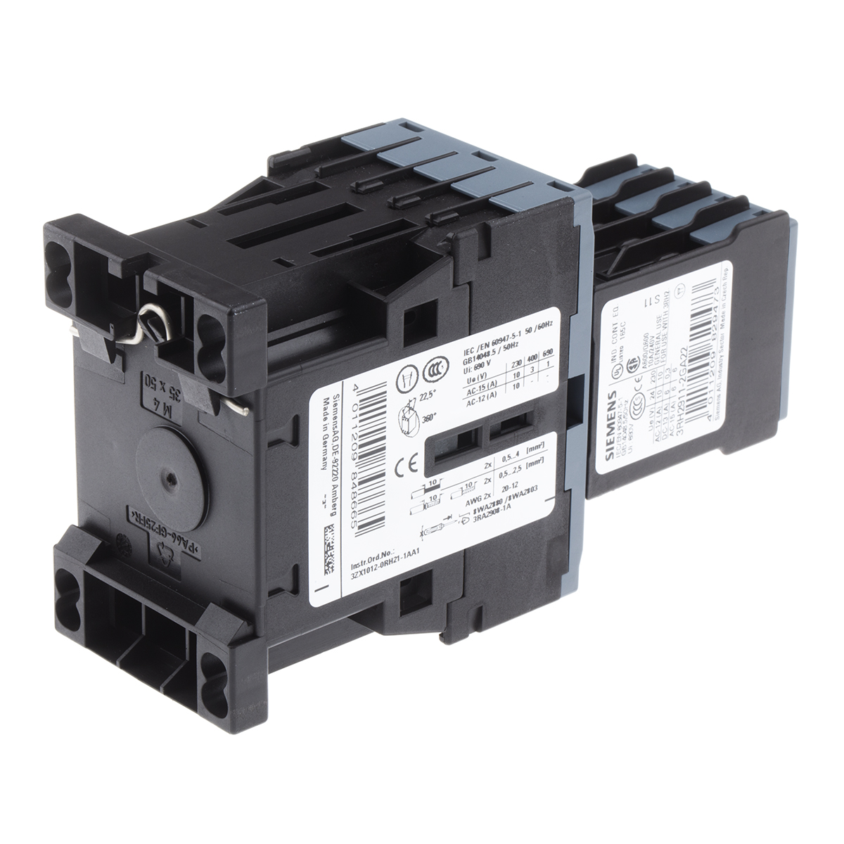 This is Sirius Innovation 3RH2 Contactor 6NO/2NC (Auxiliary) 10 A 24 V dc Coil manufactured by Siemens. The manufacturer part number is 3RH2362-2BB40. The rated contact current is 10 a. It has a maximum operating temperature of +60°c. The normal state configuration includes 6no + 2nc. It has a typical 10a load current. It has 24 v dc control voltage . The product 3rh2, is a highly preferred choice for users. Additionally, it can withstand 690v ac load voltage . The coil voltage of the product is 24 v dc. Its accurate length is 70mm. The product is available in din rail style. Furthermore, the product is 45mm wide. The product comes in 121mm depth. It is composed of [Number of Auxiliary Contacts] auxiliary contacts. Whereas, the minimum operating temperature of the product is -25°c. It features sirius range. In addition, it has a standard 6no + 2nc auxiliary contact configuration . The integrated contact has 690 v ac of voltage rating. It has equipped with 8 poles. The terminal is a spring-loaded type.