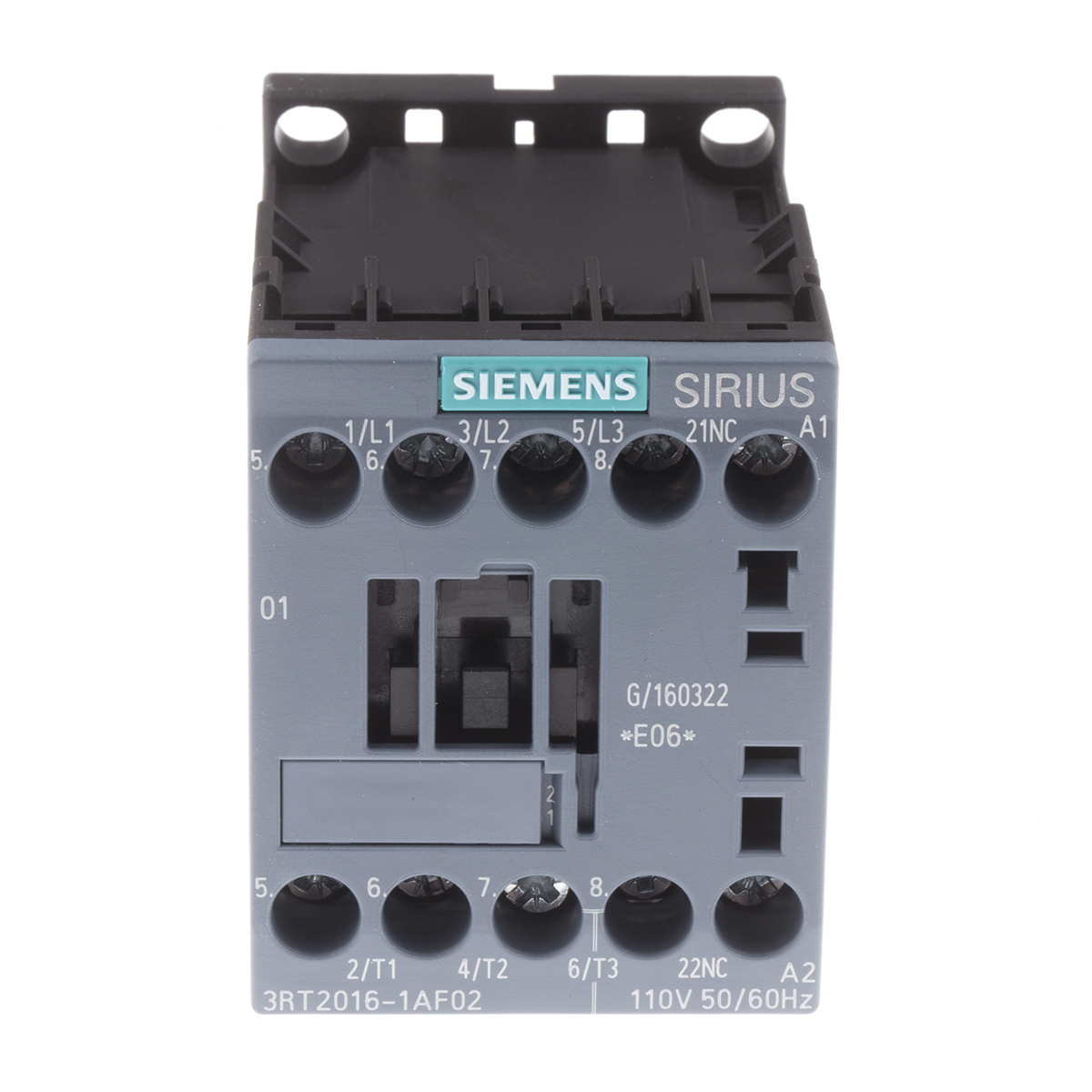 This is Sirius Innovation 3RT2 3 Pole Contactor 3NO 9 A (AC3) 4 kW (AC3) 110 V ac Coil manufactured by Siemens. The manufacturer part number is 3RT2016-1AF02. It has a maximum operating temperature of +60°c. Is it a better world product? yes. The normal state configuration includes 3no. The rated contact current is 9 a. The product size s00, 3rt2, is a highly preferred choice for users. Whereas, the minimum operating temperature of the product is -25°c. The coil voltage of the product is 110 v ac. Its accurate length is 57.5mm. It has 3p pole and throw configuration. The product is available in din rail style. Furthermore, the product is 45mm wide. The product comes in 73mm depth. It is composed of [Number of Auxiliary Contacts] auxiliary contacts. It features sirius 3rt range. Feature 4 kw of power rating. The integrated contact has 400 v ac of voltage rating. It has equipped with 3 poles. The terminal is a screw type.