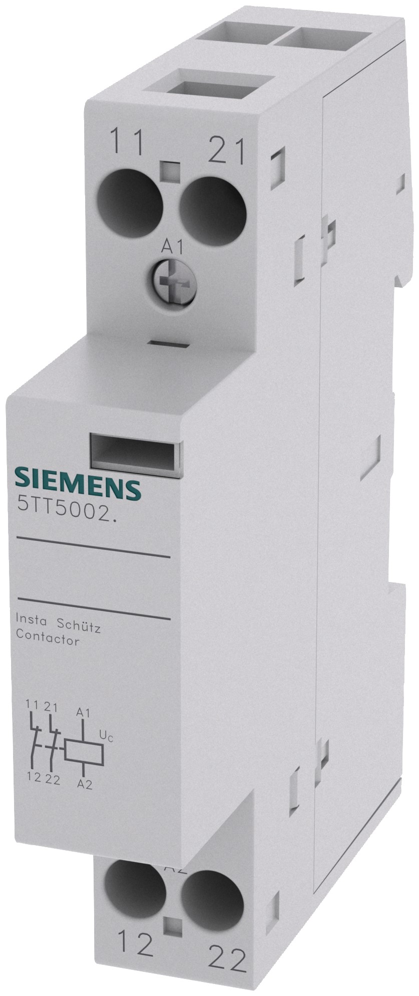 This is Sentron 5TT 2 Pole Installation Contactor 2NC 20 A 1.7 W manufactured by Siemens. The manufacturer part number is 5TT5002-2. The coil voltage of the product is 24 v. It has dpst pole and throw configuration. Furthermore, the product is 90 mm wide. It performs basic function of motor control. contactor is a versatile product designed to provide user-defined applications. It has a maximum operating temperature of 55°c. The terminal is a screw type. Its accurate length is 35mm. It has a screw type mount . The product 5tt, is a highly preferred choice for users. The product comes in 70.7mm depth. The normal state configuration includes 2 nc. Moreover, it has about 230v contact voltage . Feature 0.0026kw of power rating. It has equipped with 2 poles. Whereas, the minimum operating temperature of the product is -15°c.